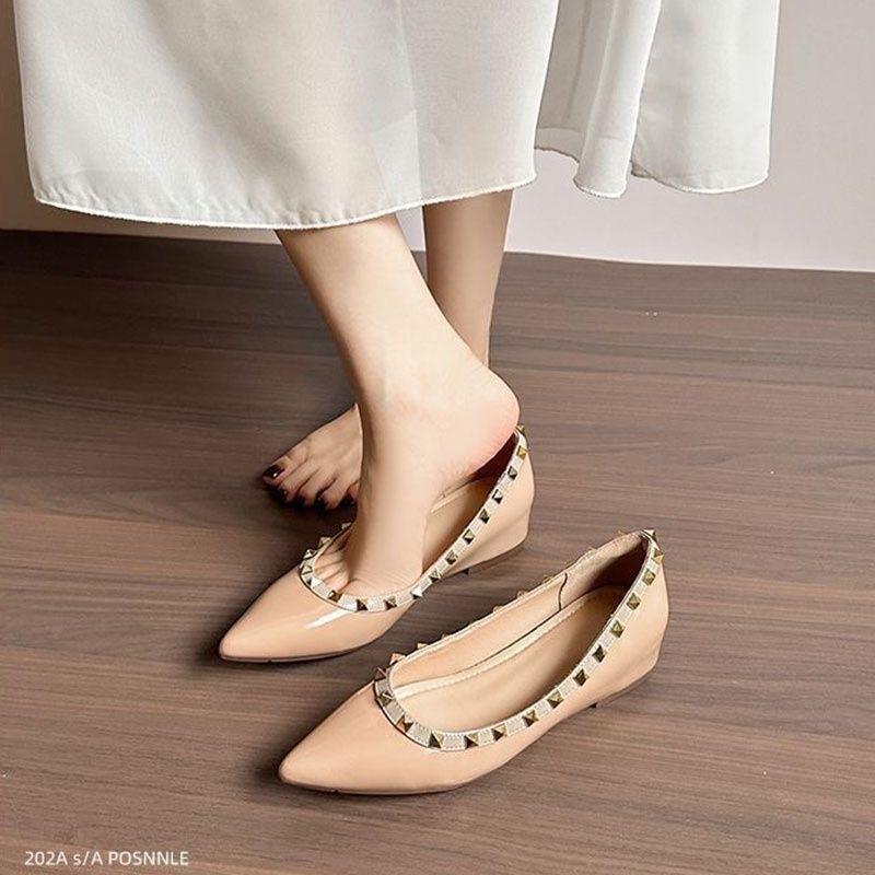 Европейские и американские вечерние ветровые удобные одинарные туфли универсальные с юбкой-лодочкой 2024 летняя одежда универсальные нескользящие остроконечные туфли с заклепками