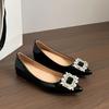 Внутреннее увеличение высоты, туфли-лодочки с французской квадратной пряжкой на одной педали, с острым носком и стразами, 2024, на плоской подошве, новые, темпераментные женские туфли с мягкой подошвой и приятным ароматом