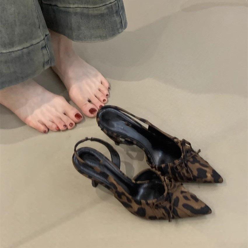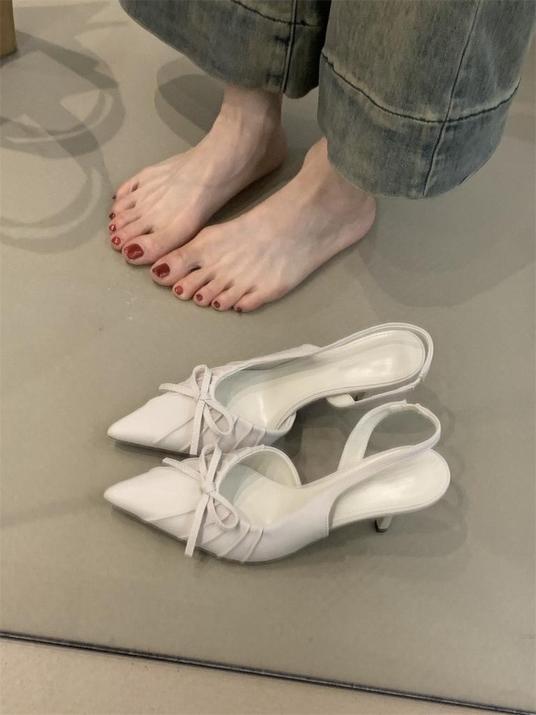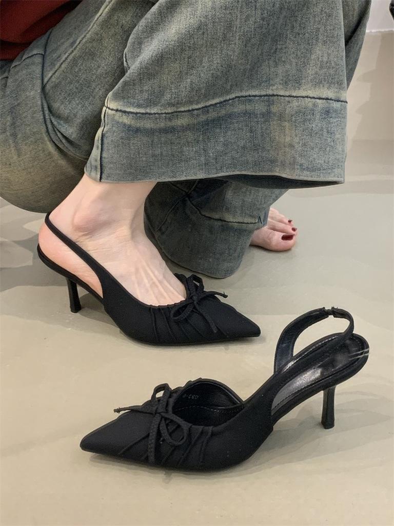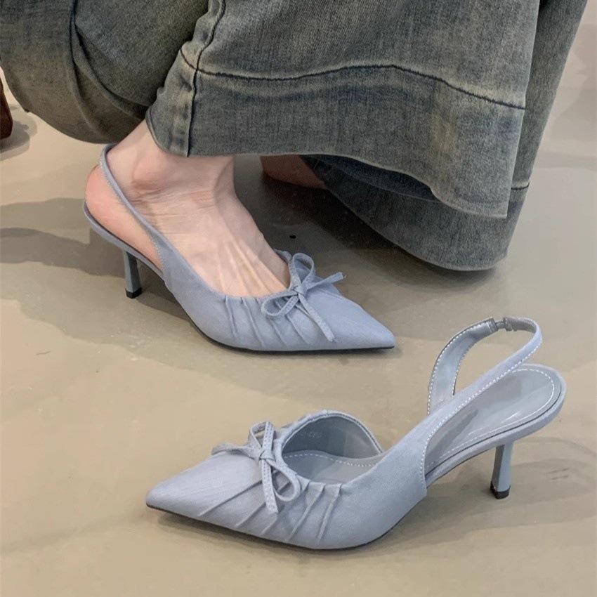 Французские нишевые темпераментные высокие каблуки женские 2025 весна бант заостренный нос неглубокий нос тонкий каблук сандалии мешок головка