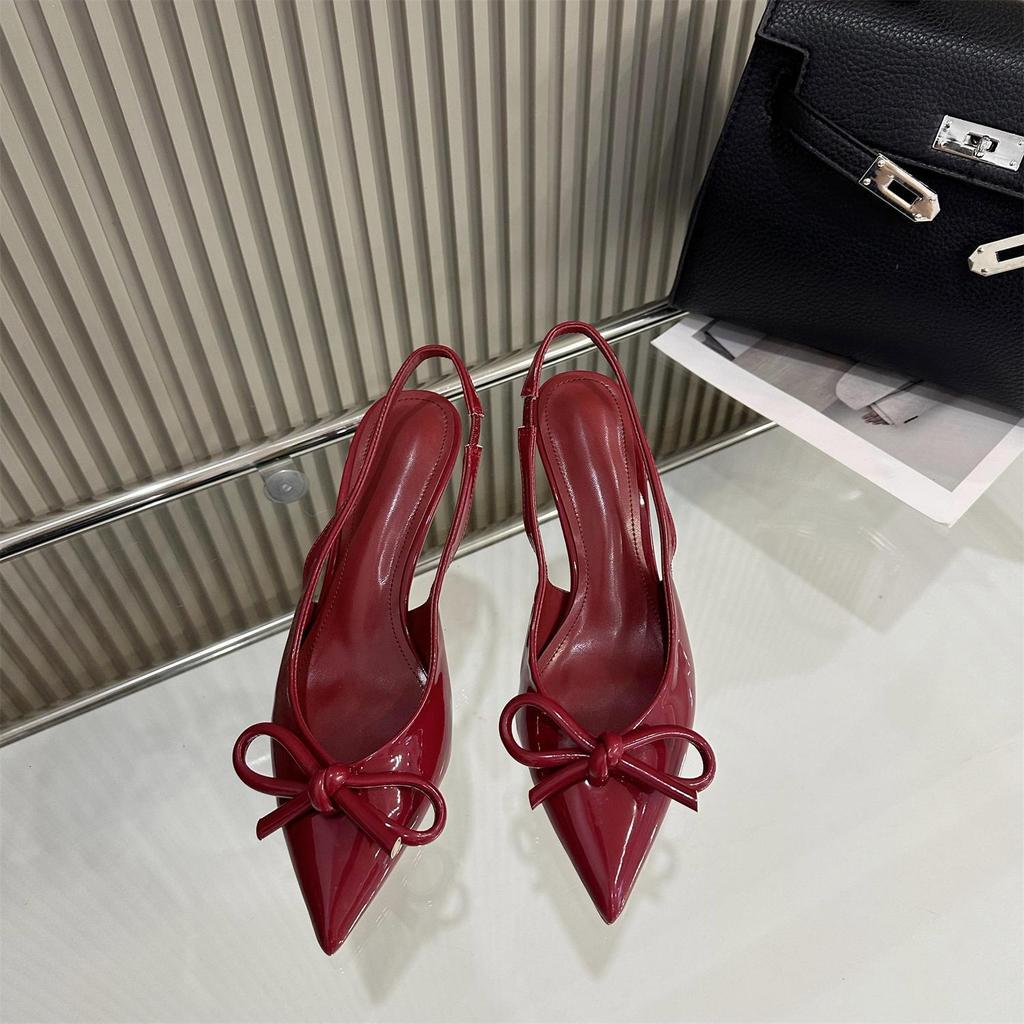 Baotou sandals spring and autumn 2025 new pointed bow temperament high heels celebrity fashion empty single shoes women — купить товар онлайн с бесплатной доставкой по всему миру!