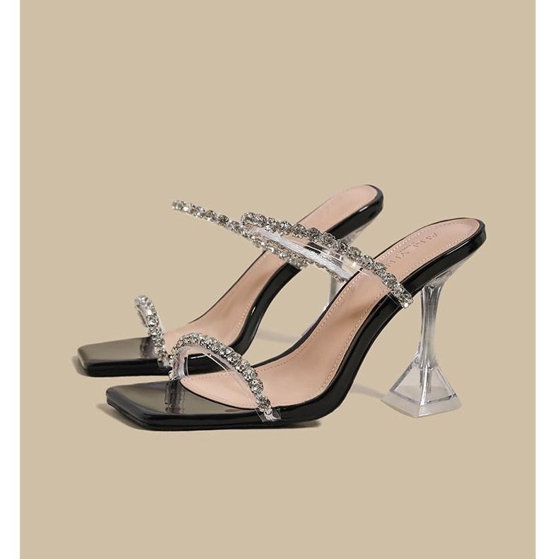 Серебристые туфли на высоком каблуке женские летние стразы слово с босоножками на высоком каблуке женские 2025 новые классные тапочки женская летняя одежда