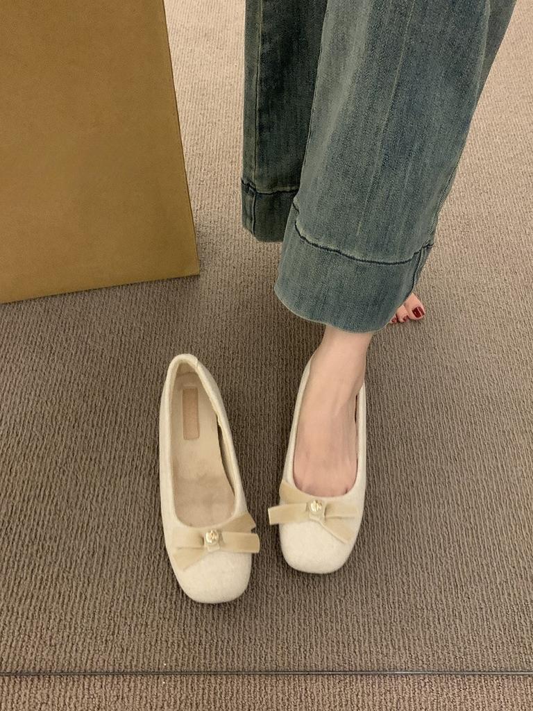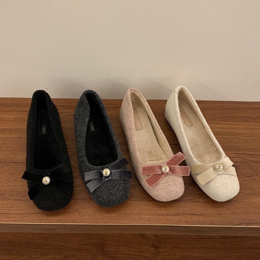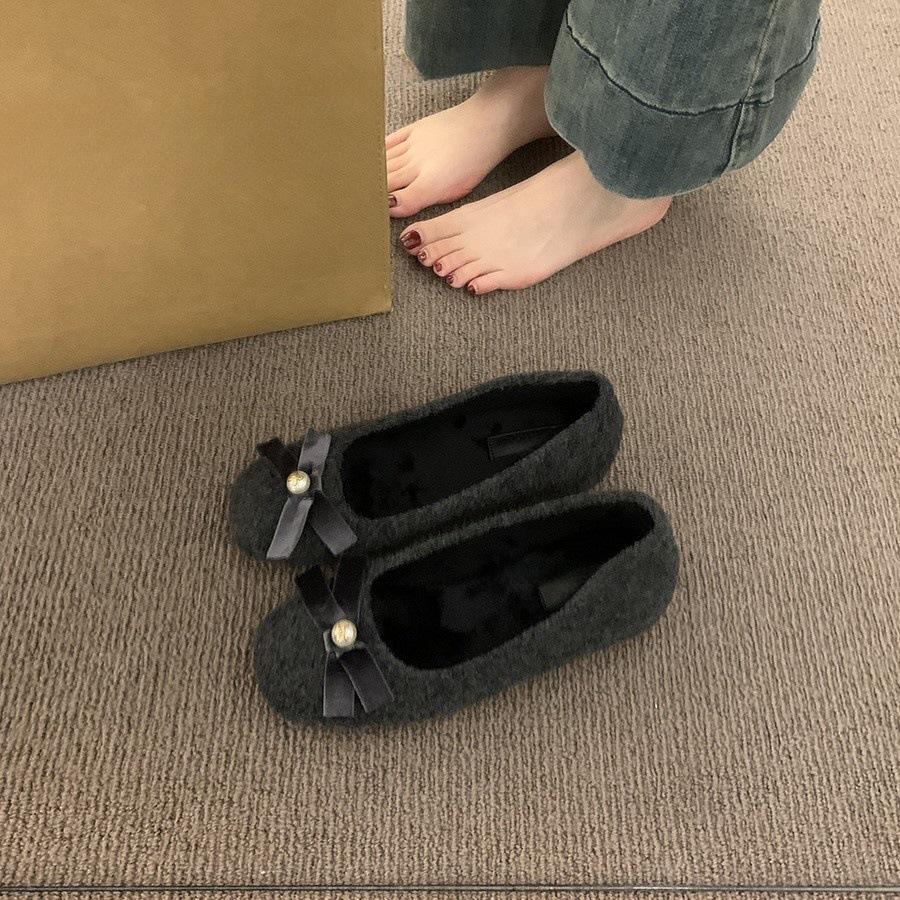 Увеличивающие внутреннюю высоту розовые шерстяные одинарные туфли женские зимние новые корейские балетки сказочные ветряные пушистые туфли на толстой подошве бархатные хлопковые туфли