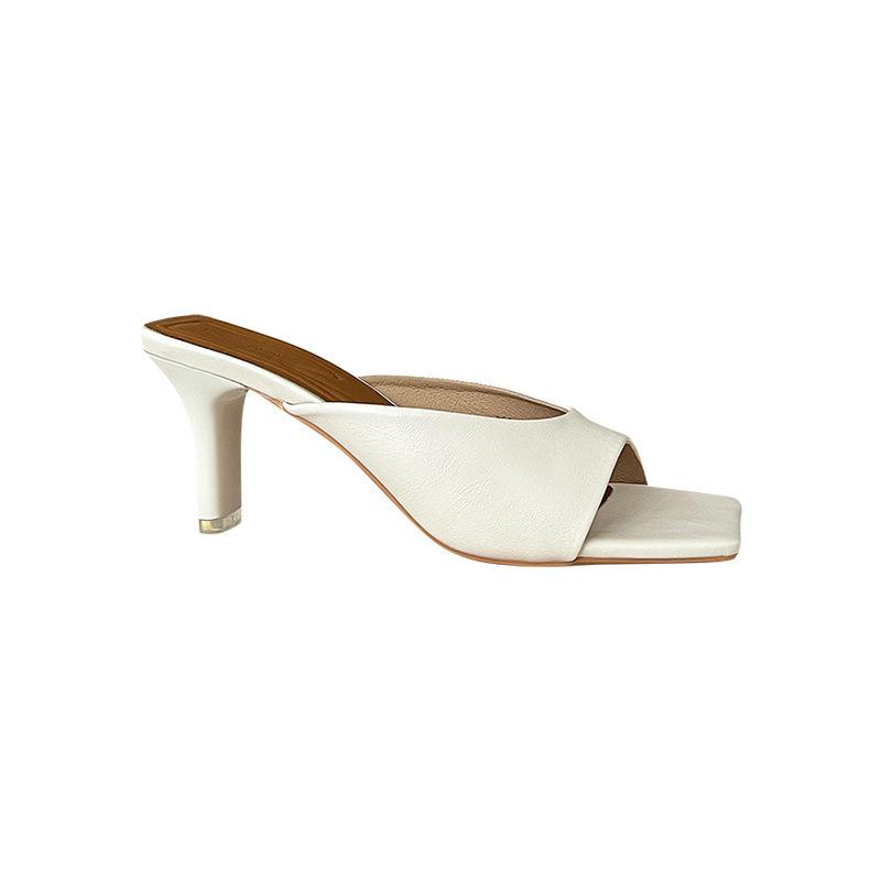 Французские ретро бежевые квадратный носок высокий каблук крутые шлепанцы женские летние новые на тонком каблуке крутые шлепанцы