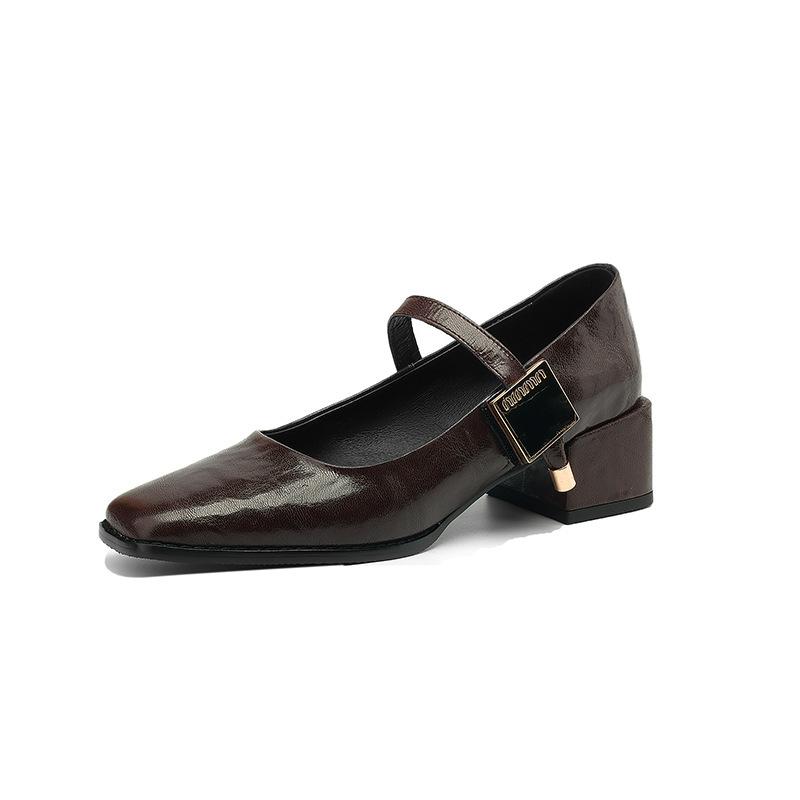 Ремень Maillard в стиле ретро с одним словом, маленькие кожаные туфли Мэри Джейн, универсальные туфли с квадратным носком и толстым каблуком, легкие одинарные туфли для женщин 2024 г.