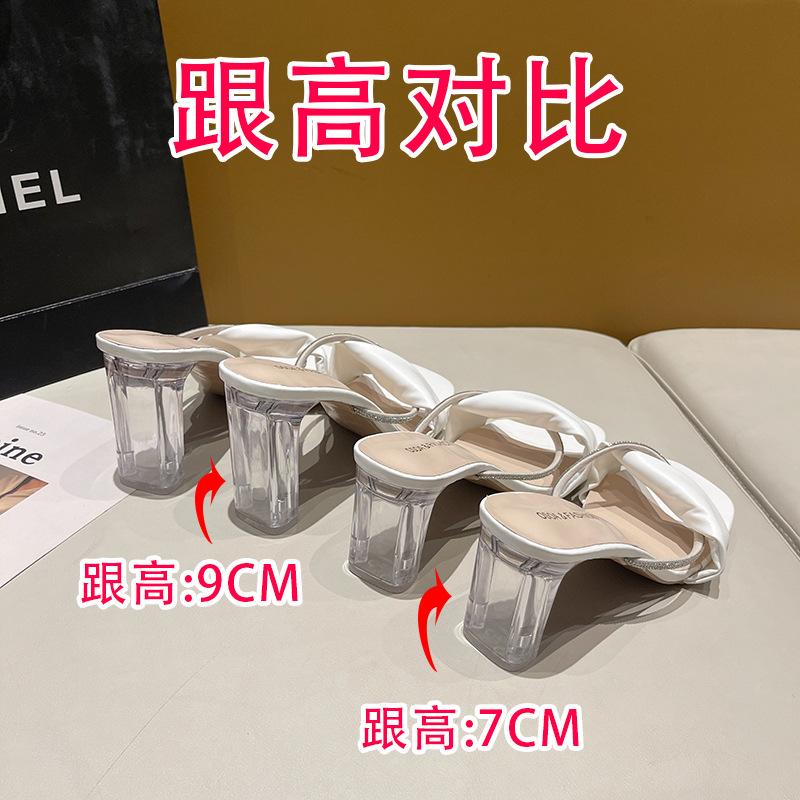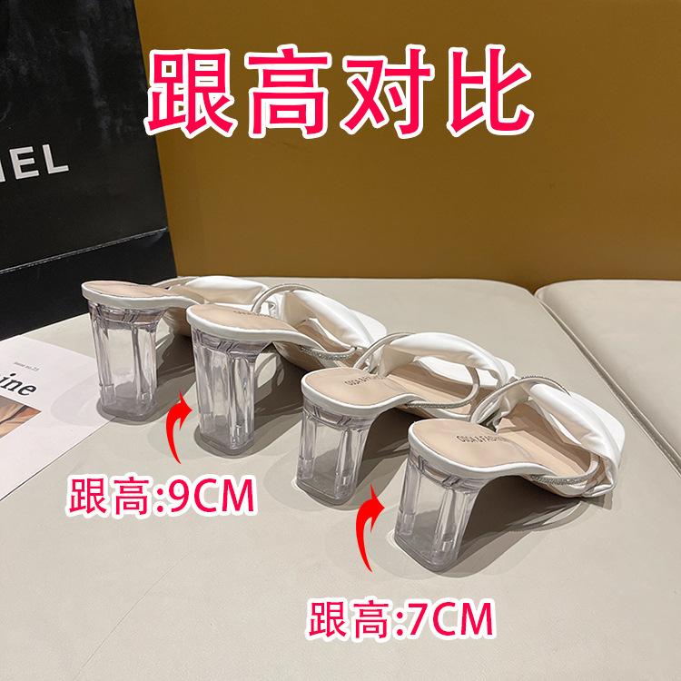 Французские модные босоножки на высоком каблуке, женская верхняя одежда на толстом каблуке летом 2025 года, новые универсальные классные тапочки с открытым носком и кристаллами на каблуке