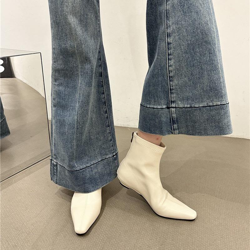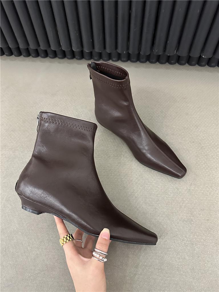 Temperament Низкий каблук квадратной формы флисовые короткие сапоги женские 2024 осень и зима новые простые женские сапоги короткие сапоги французские узкие сапоги