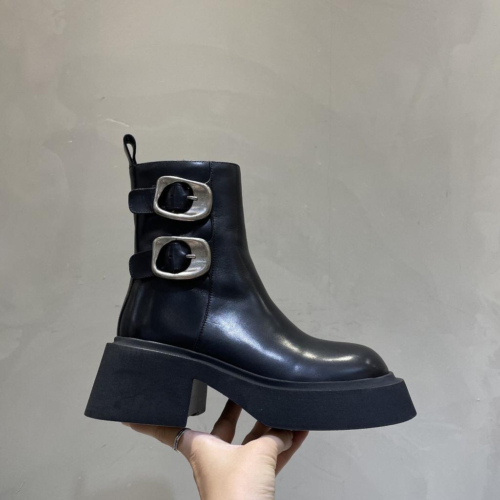 Европейская станция 2024 осень и зима новые флисовые теплые короткие ботинки на толстой подошве премиум-класса с пряжкой на ремне ботинки Martin для женщин