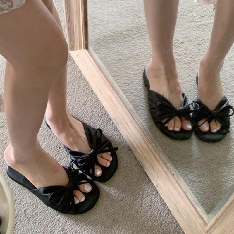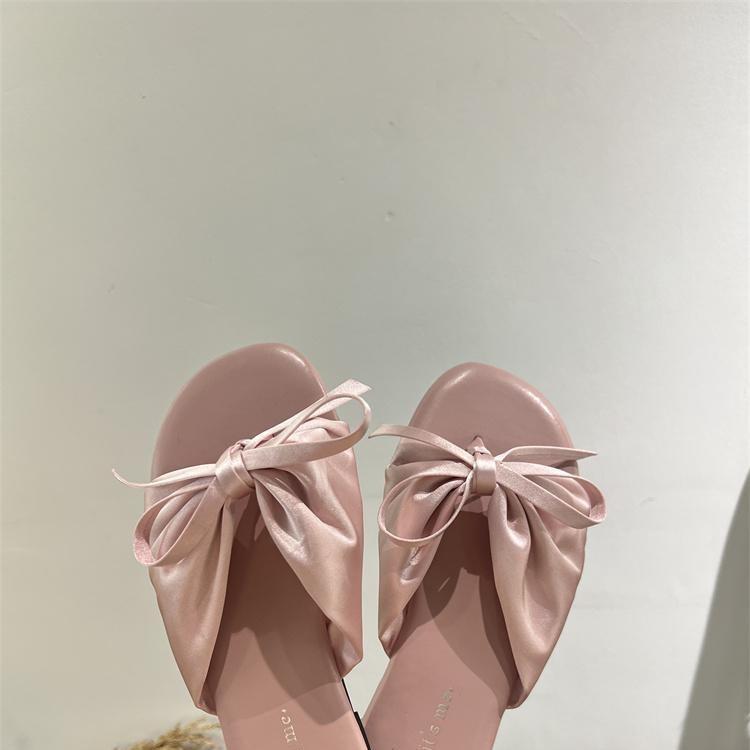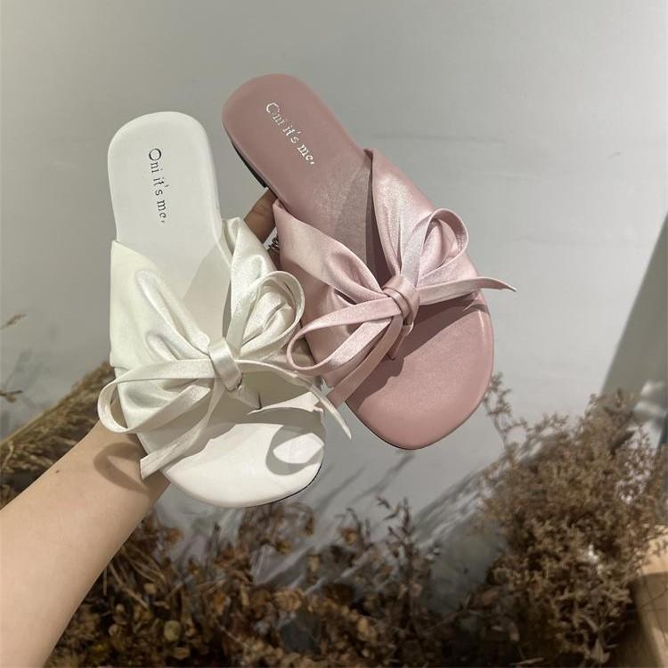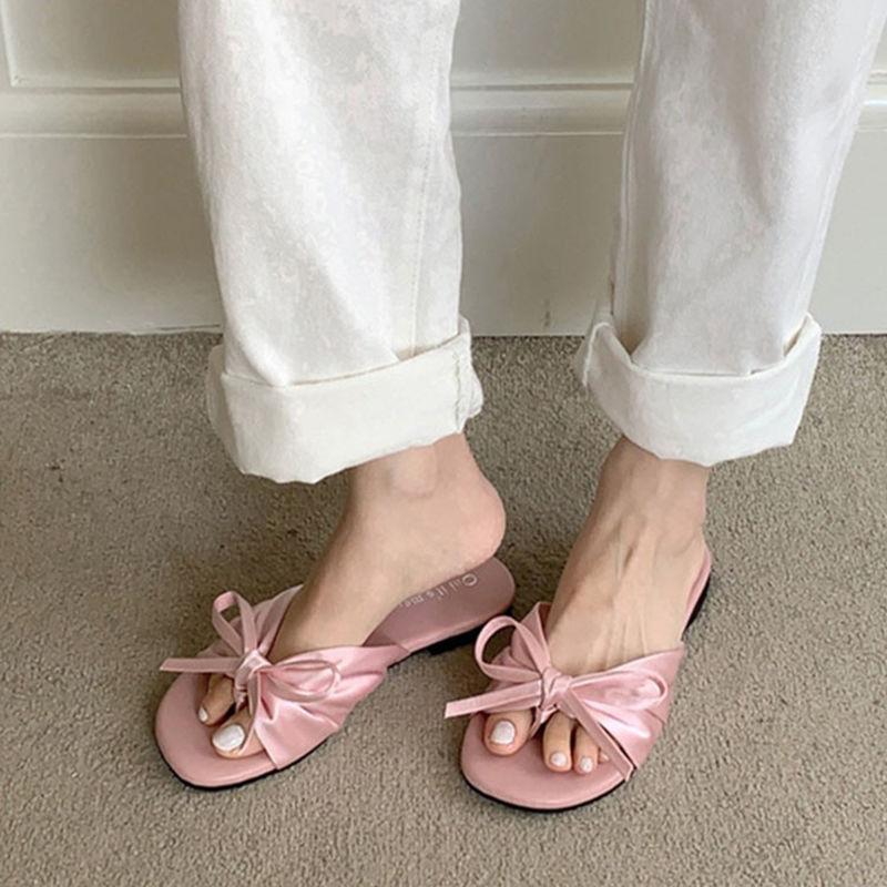 Повседневные элегантные классные тапочки 2025 года, женские новые туфли с бантом на мягкой подошве, пляжные сандалии с открытым носком на плоской подошве