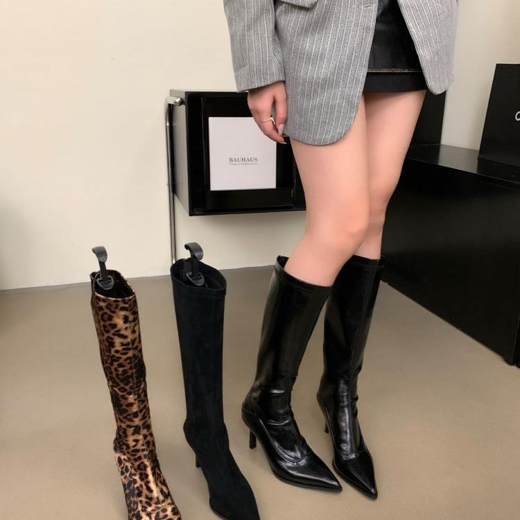Осенью и зимой 2024 года на подиуме будут модные туфли с острым носком и тонким каблуком, леопардовый принт, но сапоги до колена, высокие сапоги, женские сапоги, высокие