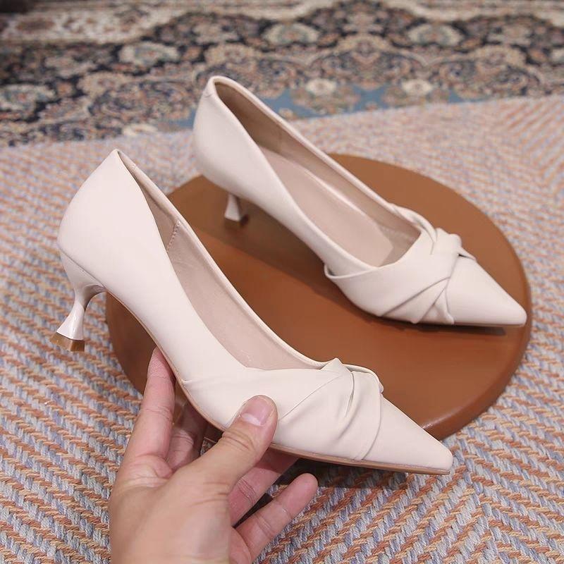 Ретро британский стиль заостренные однотонные туфли женские 2024 года интернет-знаменитости новые французские леди высокие каблуки для улицы