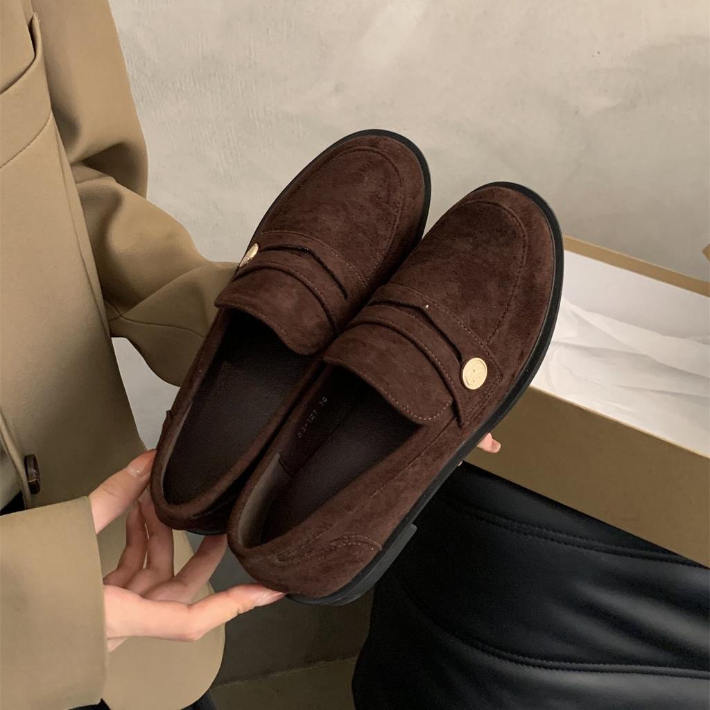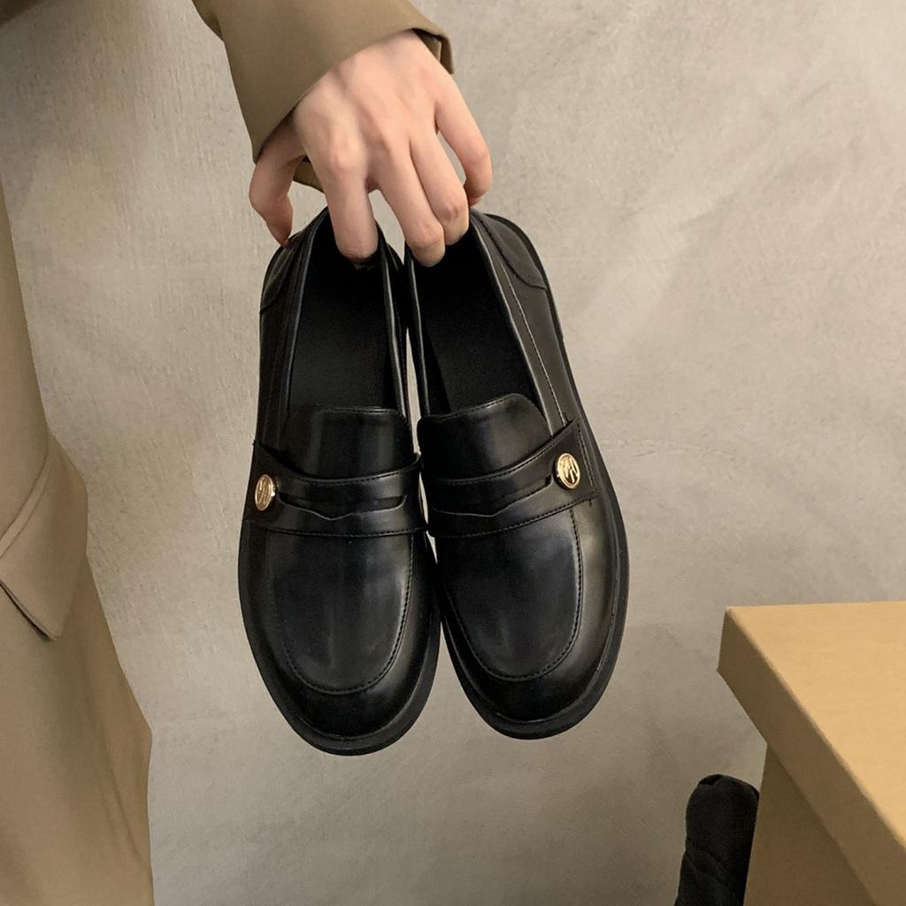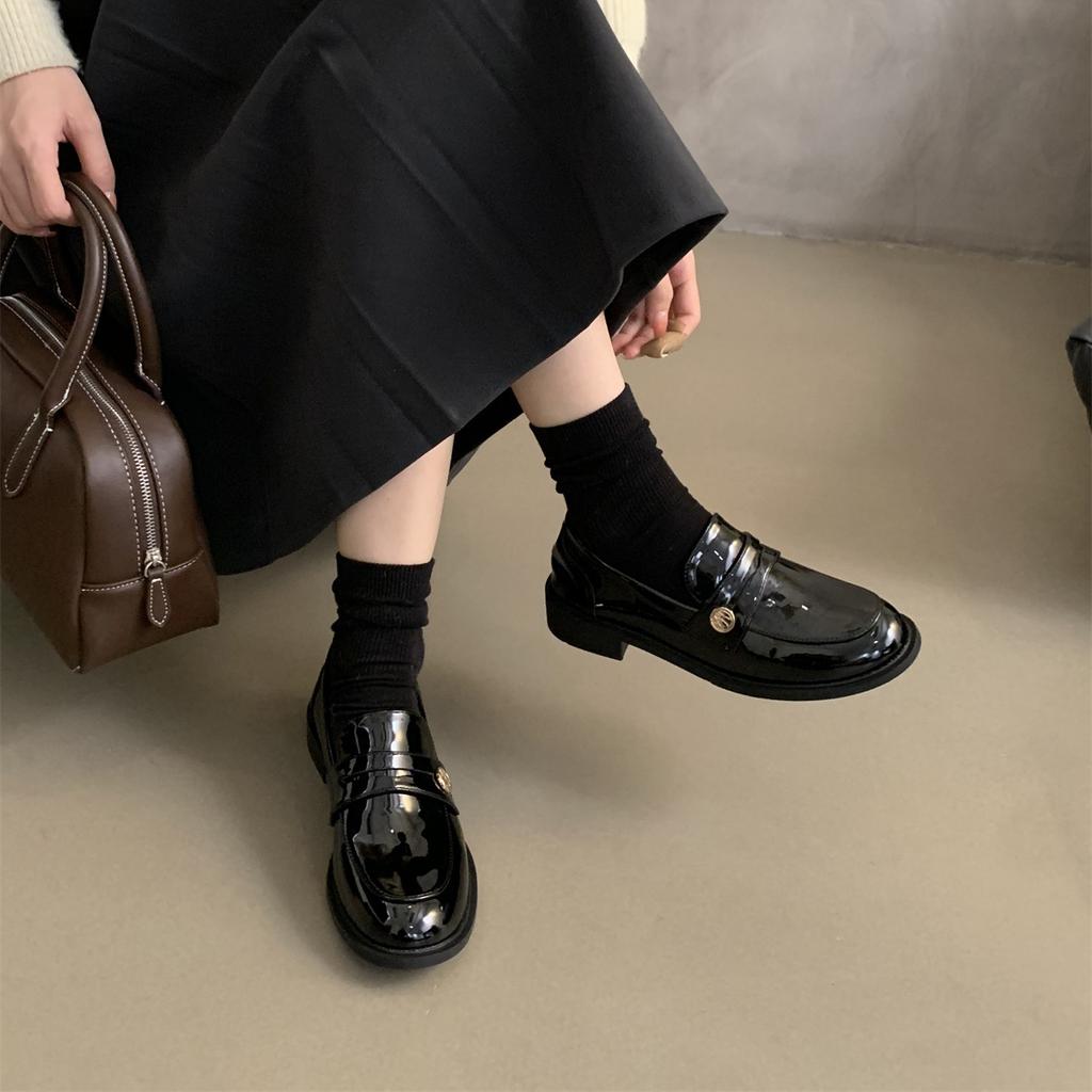 Британские туфли из кожи женские 2025 весна новая корейская версия французские туфли с круглым носком ретро пригородные туфли на толстом каблуке с одной педалью