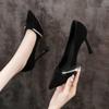 Высокие каблуки женские новые весна и осень 2025 тонкие каблуки заостренные неглубокие горлышки стразы профессиональный темперамент студенческий этикет обувь
