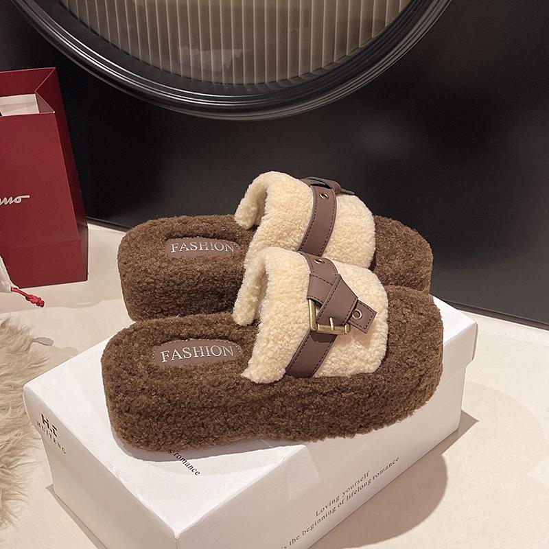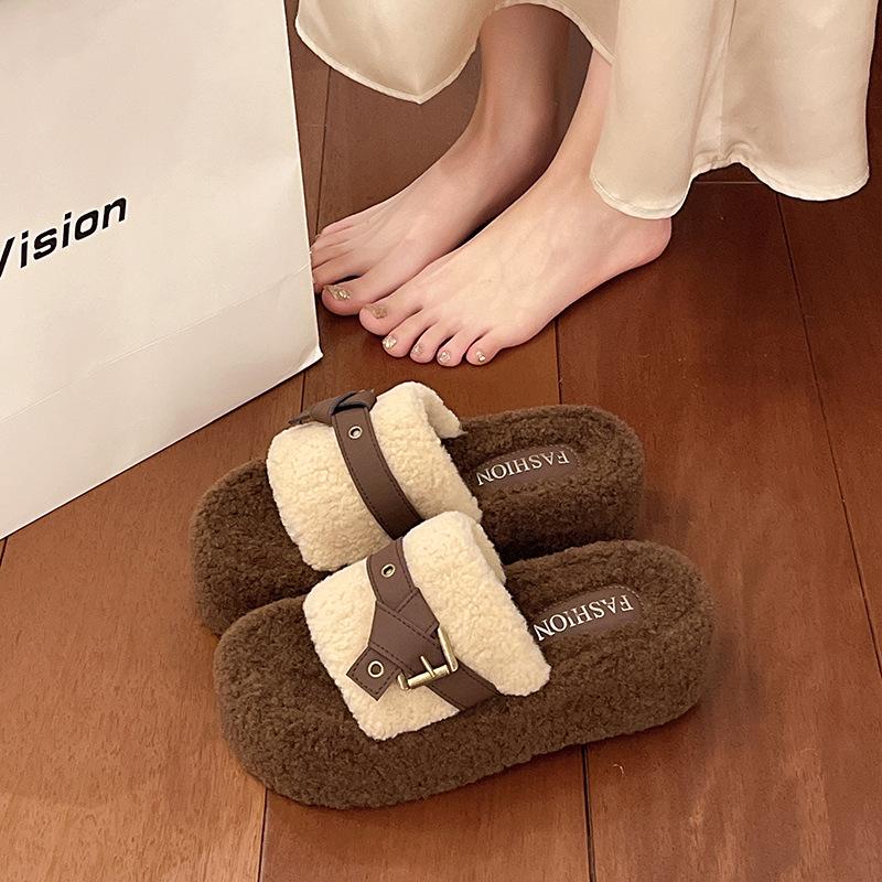 7 см пушистые тапочки женские утолщенные однотонные хлопковые тапочки модные подходящие по цвету домашние пушистые тапочки женские на мягкой подошве
