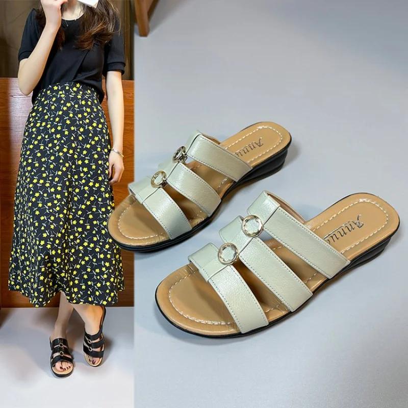 Женские летние тапочки на танкетке, женские открытые шлепанцы на высоком каблуке, сандалии, дизайнерское платье, повседневные шлепанцы, Zapatillas Mujer