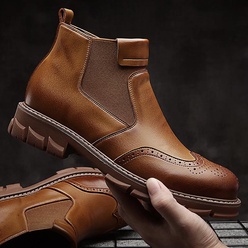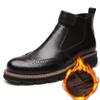Ручная работа Плюс С Мехом Мужские Ботинки Челси Из Натуральной Кожи Высокого Качества Ретро Броги Туфли На Платформе Водонепроницаемые Ботинки Для Мужчин