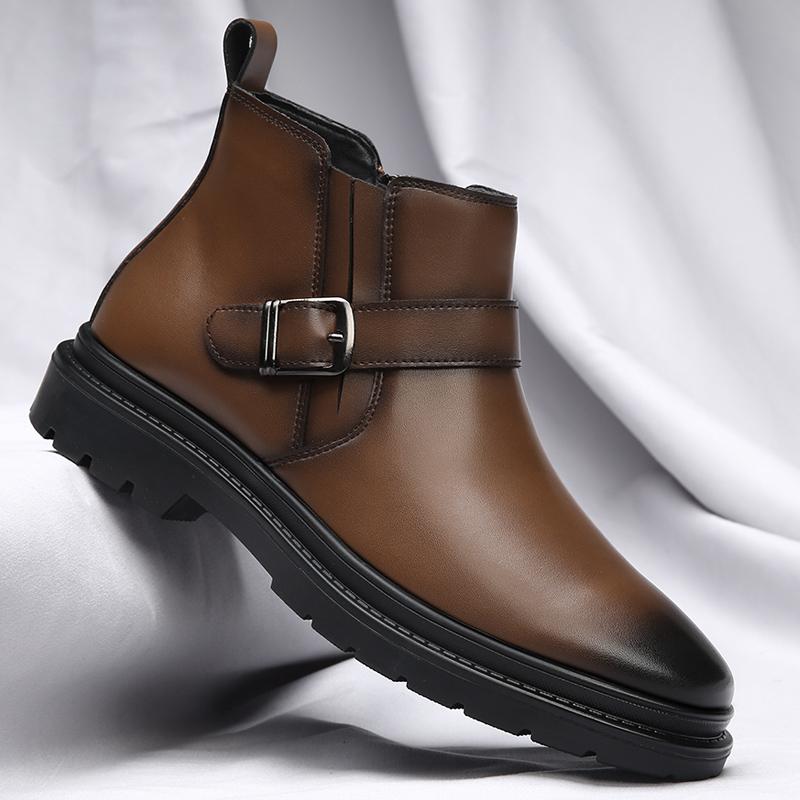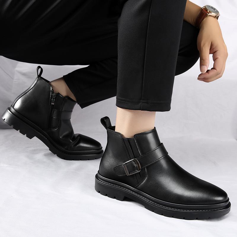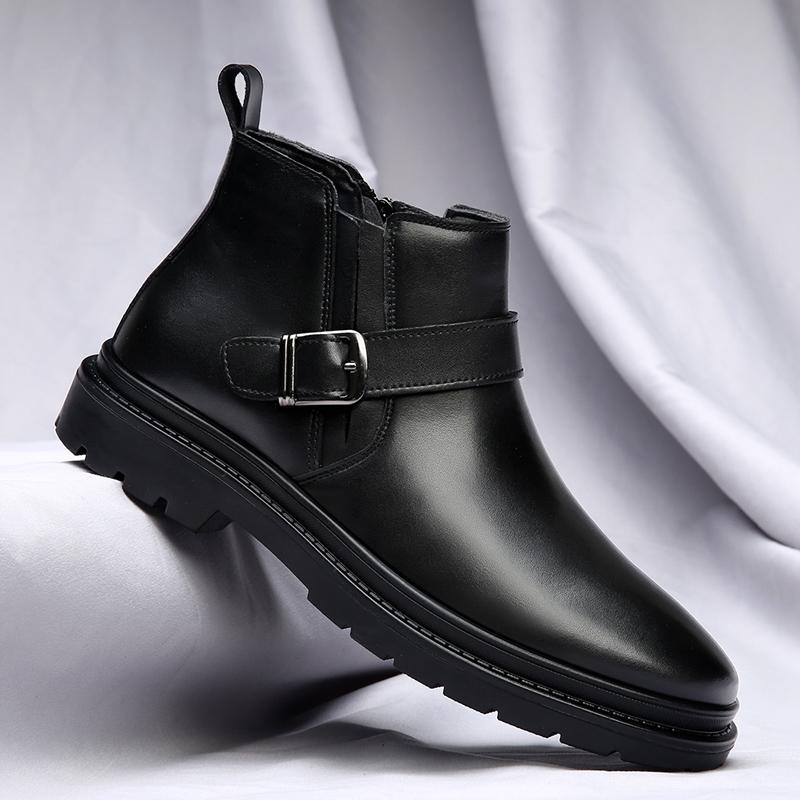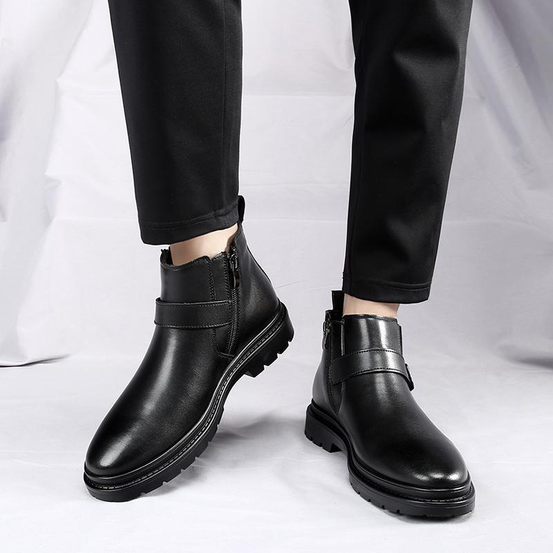 Новые зимние ботинки, новые роскошные брендовые мужские мотоциклетные ботинки, высокие универсальные кожаные ботинки, мужские деловые ботильоны с боковой молнией
