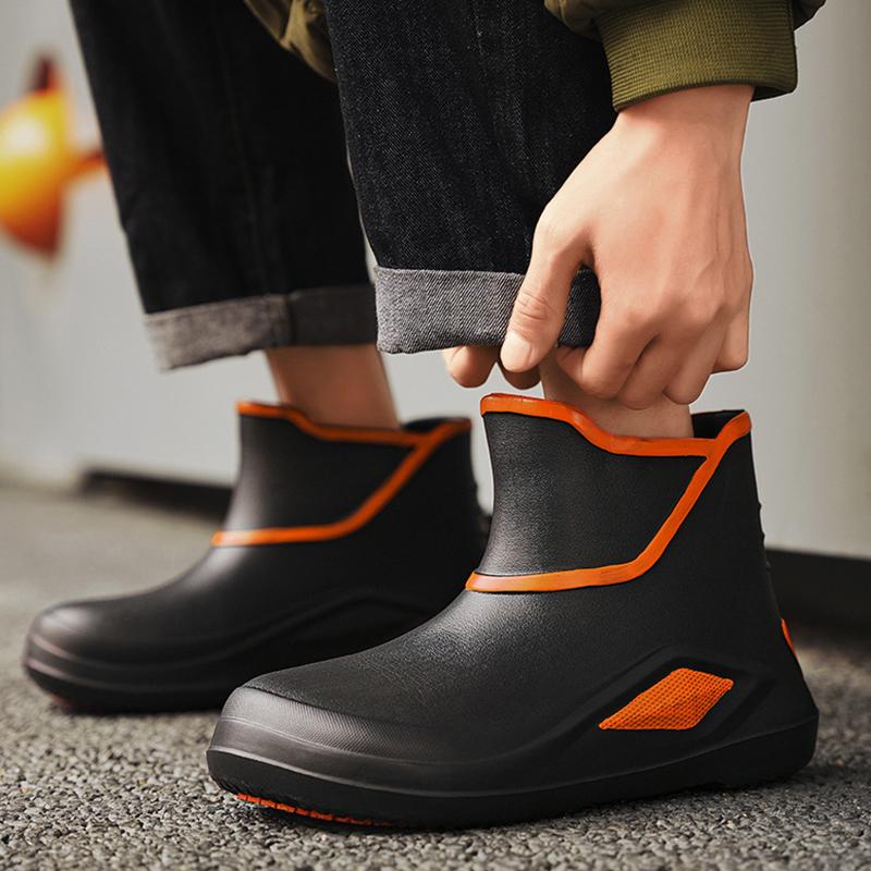 Сапоги для дождя без застежек, мужские резиновые сапоги, водонепроницаемые ботинки на платформе, модные уличные нескользящие сапоги для мужчин, рабочие галоши для рыбалки