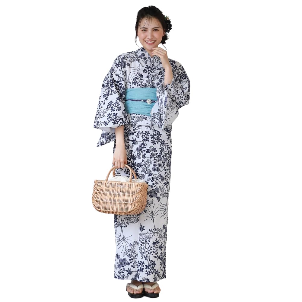 16 узоров на выбор Комплект юката хеко оби Tokimeki summer love Комплект из 2 предметов юката хеко оби Маленькие цветы темно-синего цвета на белом (16. задний план)