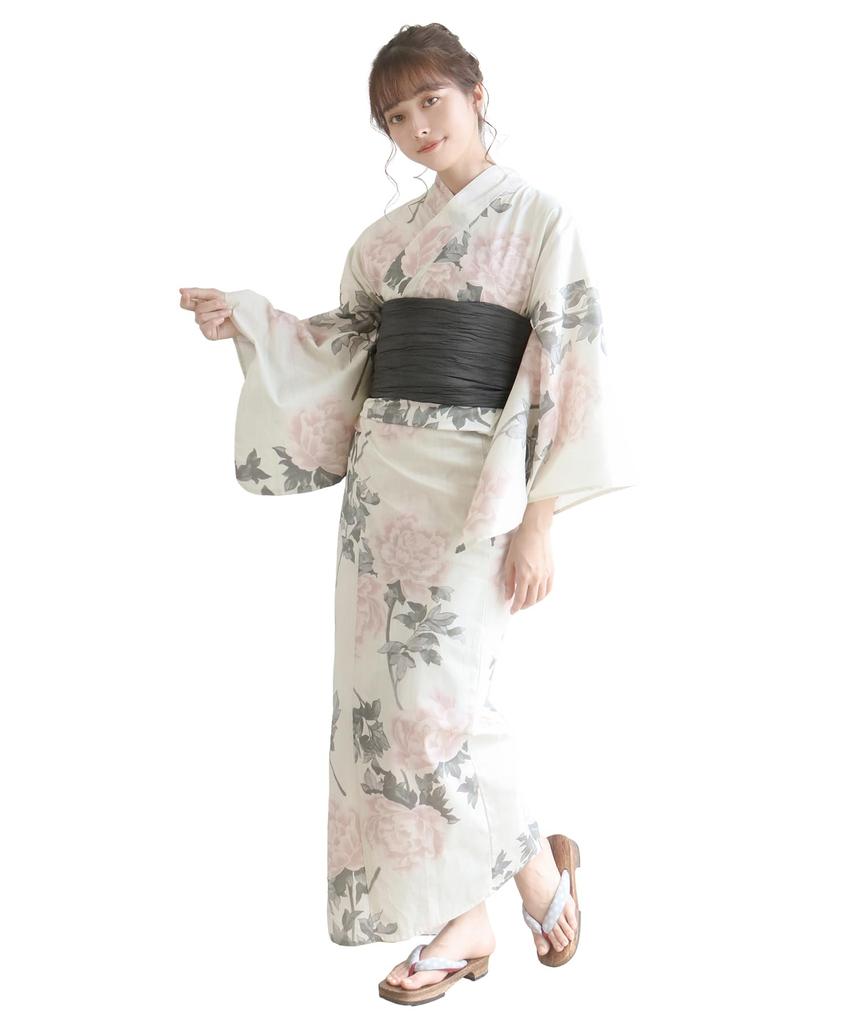 Юката разный комплект heiko F один размер подходит [KYOETSU] комплект, переплетение, неотбеленный, 6 предметов (юката, оби, нижнее белье, гэта, пояс) Женский (5.Антиквариат