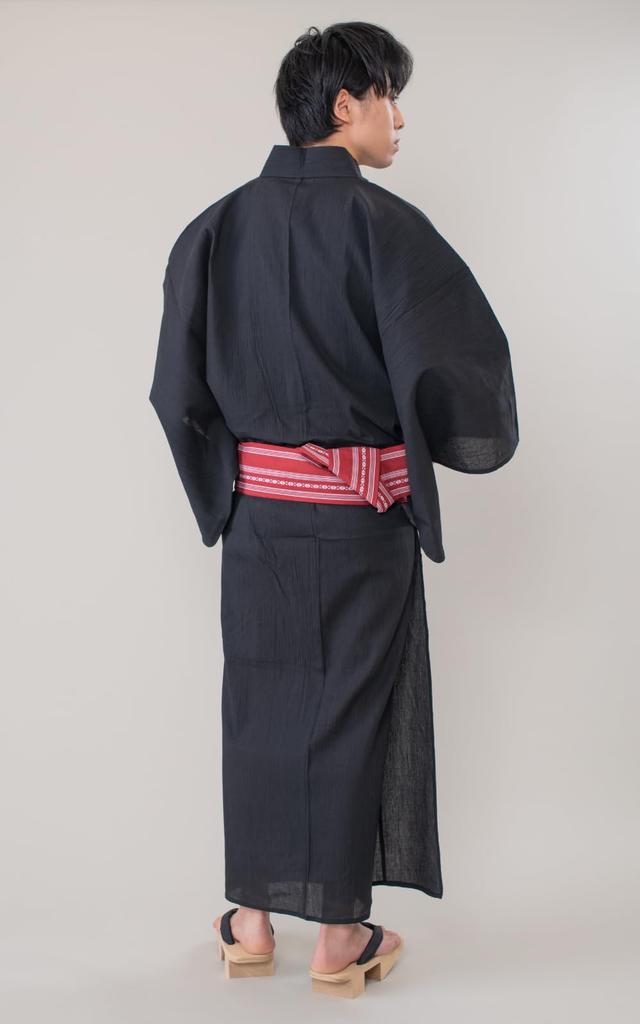 Юката Оби Ива Хлопок Хлопок Презентация Оби x Красный [Ai Indigo] Мужской и 2-х предметный комплект, антипригарное плетение, лен, (Черный А1.Л)