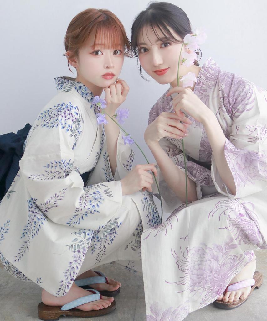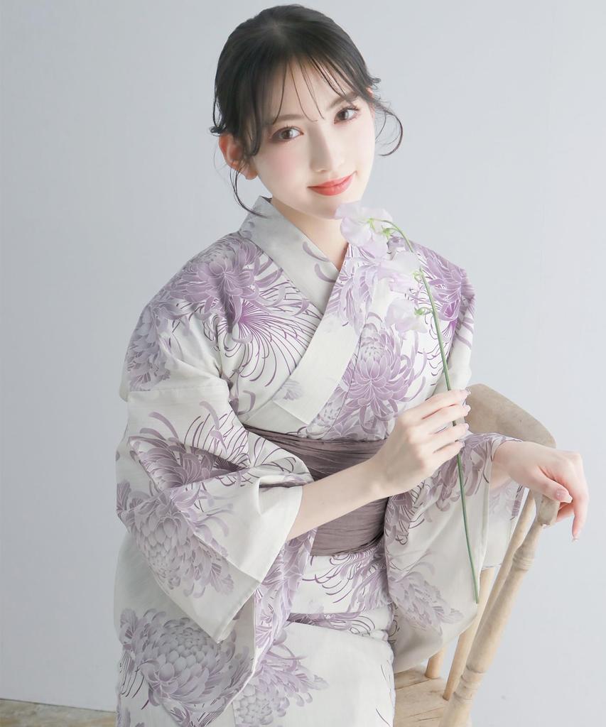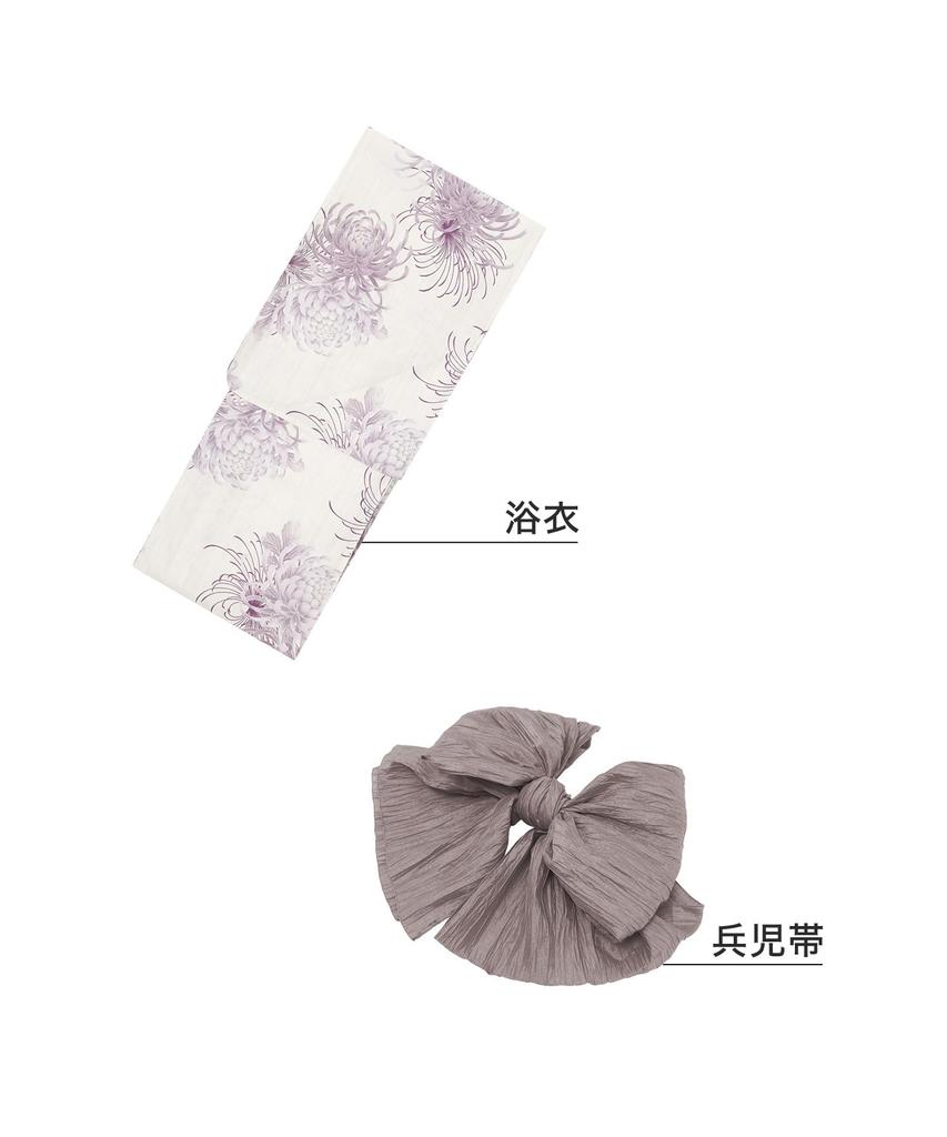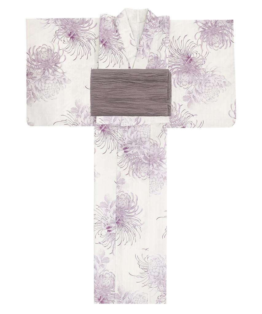 Комплект сменной одежды юката heiko E Фиолетовая хризантема, один размер [KYOETSU], плетение, экрю, 2 предмета (юката, оби), Женский (3. дымка, все)