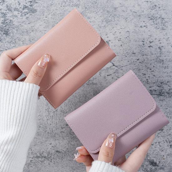 Женский кошелек тройного сложения из искусственной кожи, держатель для кредитных карт с окошком для удостоверения личности, портативный небольшой кошелек с кнопкой-защелкой для повседневных покупок — купить товар онлайн с бесплатной доставкой по всему миру!