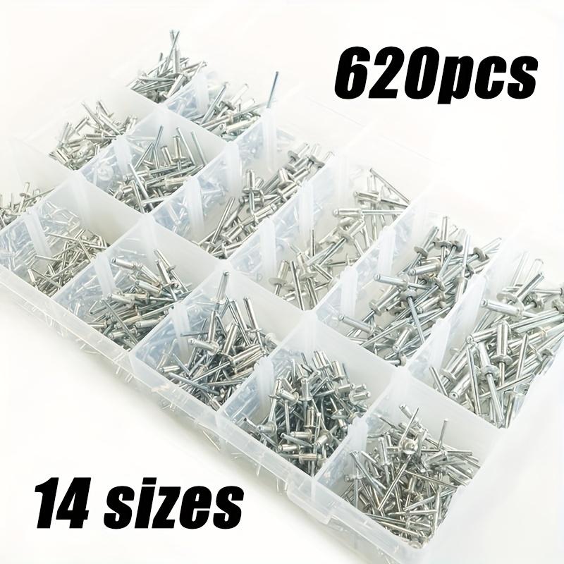 Набор алюминиевых вытяжных заклепок, 620 шт. - Доступно 14 размеров, включая вытяжные заклепки диаметром 1/8", 3/16", 3/32", 5/32"