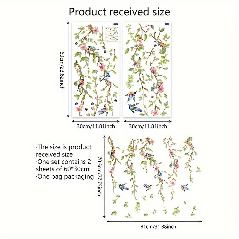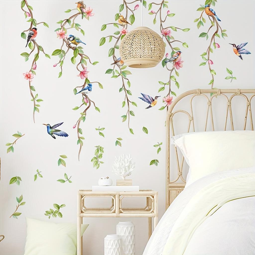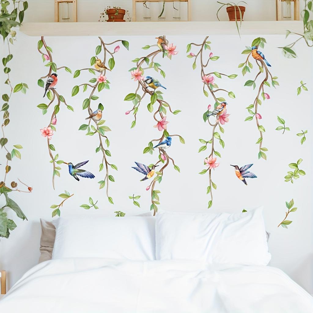 1 набор наклеек на стену с зелеными растениями, цветами и птицами - самоклеящиеся настенные украшения для гостиных и домов, идеально подходят в качестве наклеек на заднюю панель телевизора
