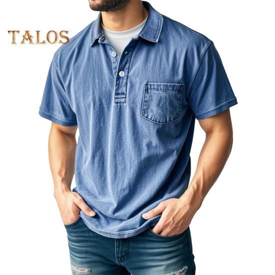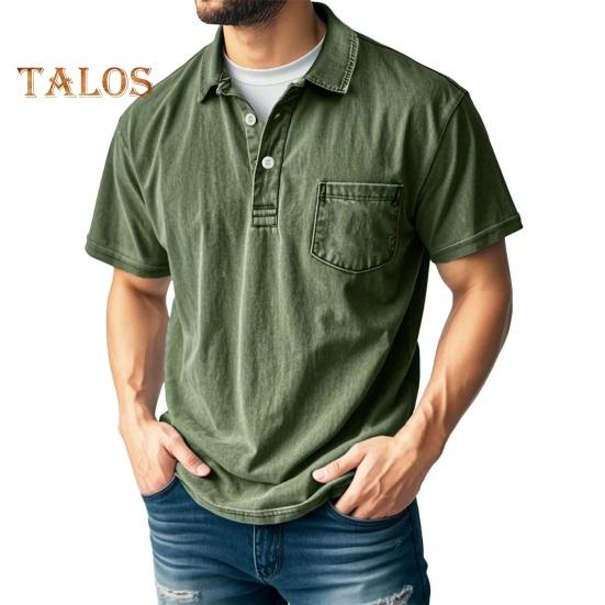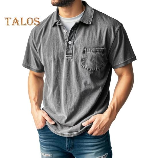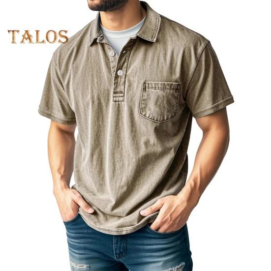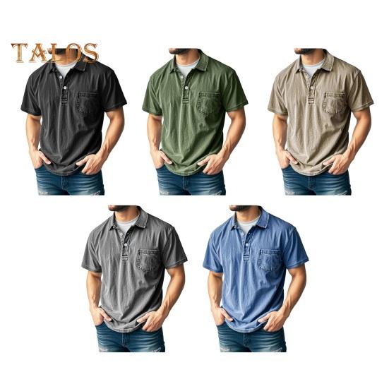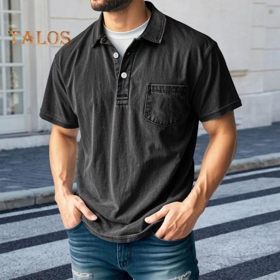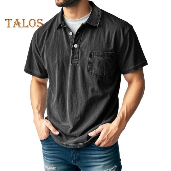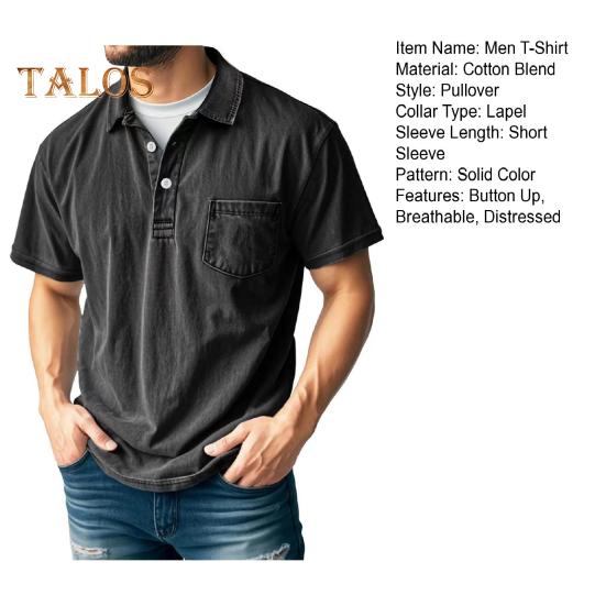 Винтажный дизайн: Эта мужская футболка с короткими рукавами, застегивающимся на три пуговицы воротником и нагрудным карманом отличается винтажным потертым стилем, который добавит вашему образу нотку грубого очарования.