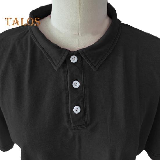 Представляем нашу мужскую футболку с лацканами — универсальное и стильное дополнение к вашему повседневному гардеробу.. Эта классическая футболка имеет застегивающийся на три пуговицы воротник, нагрудный карман спереди и винтажный потертый стиль, что придает ей модный вид..