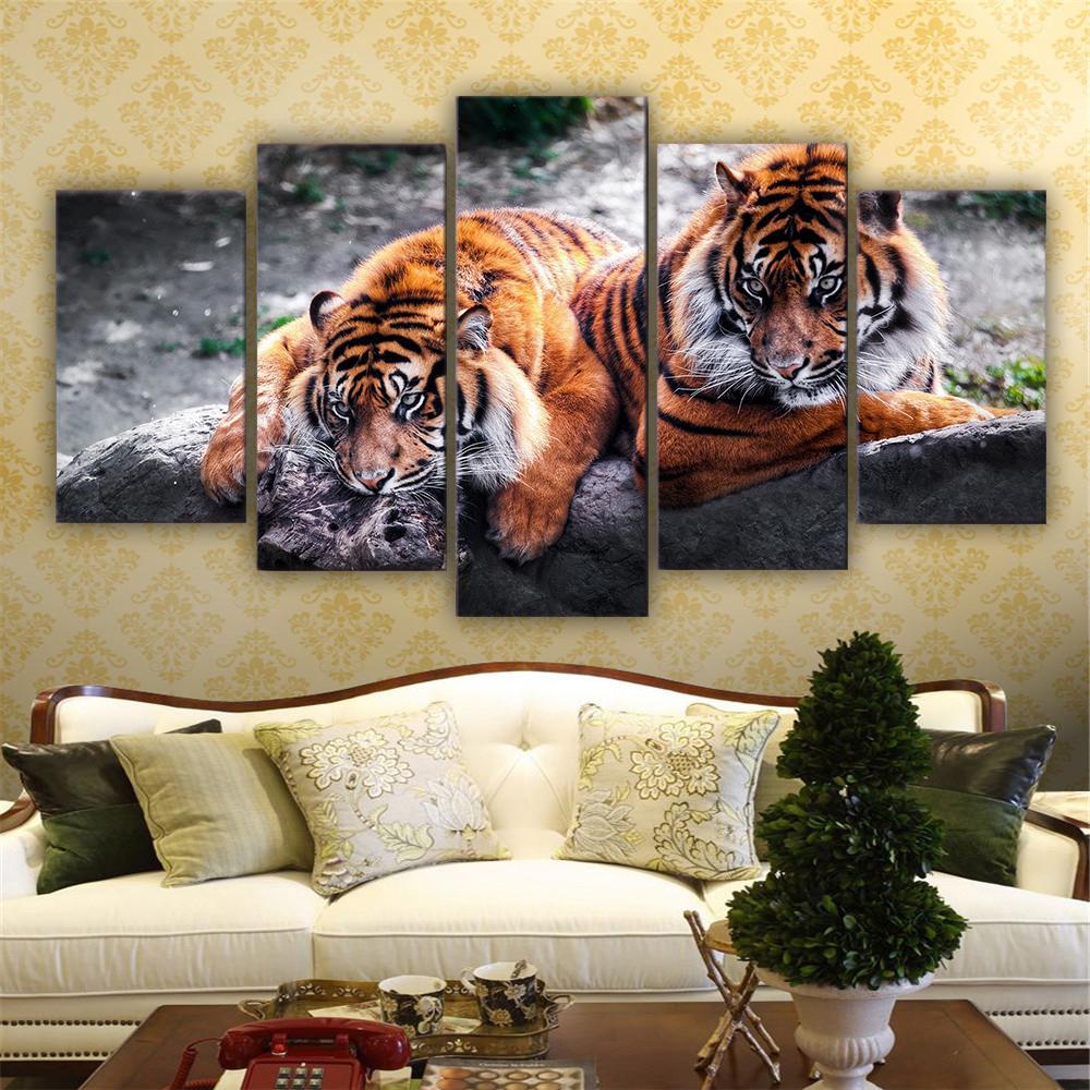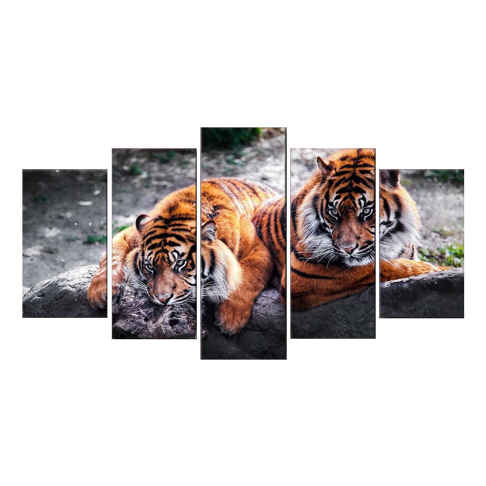 Настенные художественные холсты, постеры, 5 принтов на панелях, модульные картины с изображением животного, тигра и пейзажа для современной гостиной, картины без рамки