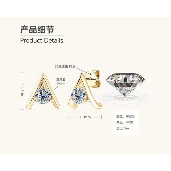 Серебряные серьги-гвоздики Silvere Glam S925 простые, изысканные и маленькие V-образные из муассанита, уникальный и универсальный серебряный аксессуар для ушей