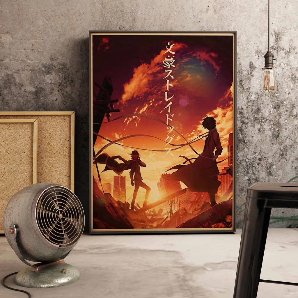 Рамка из цельного дерева, Япония, знаменитый мультфильм, аниме, картина, плакаты с бродячими собаками, спальня, качество жизни, холст, ретро живопись, искусство, домашний декор стен
