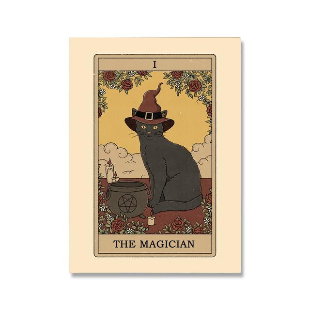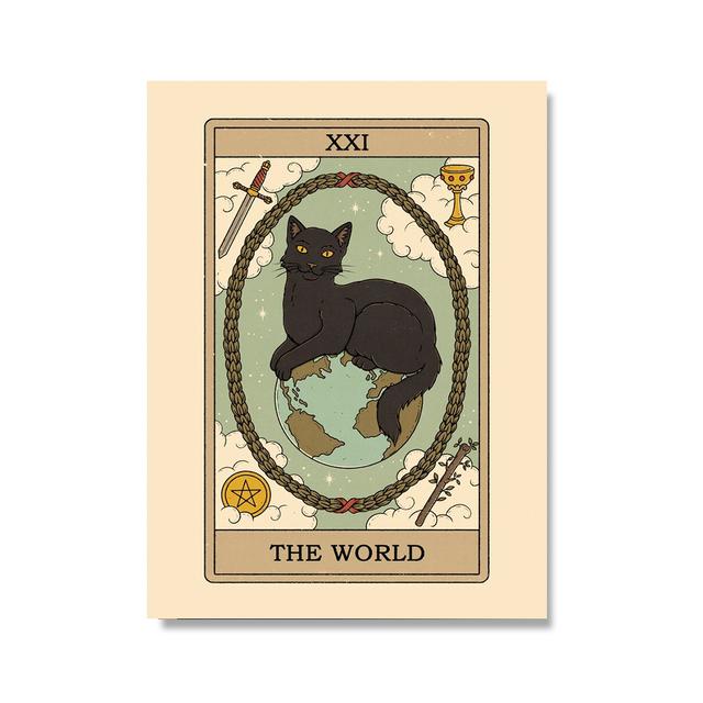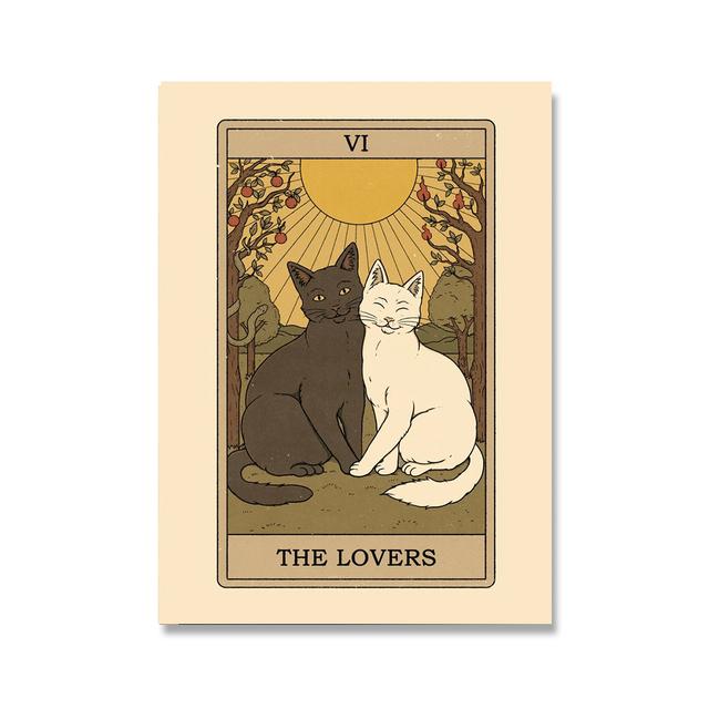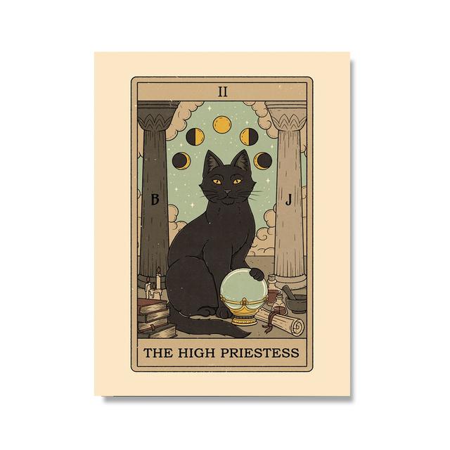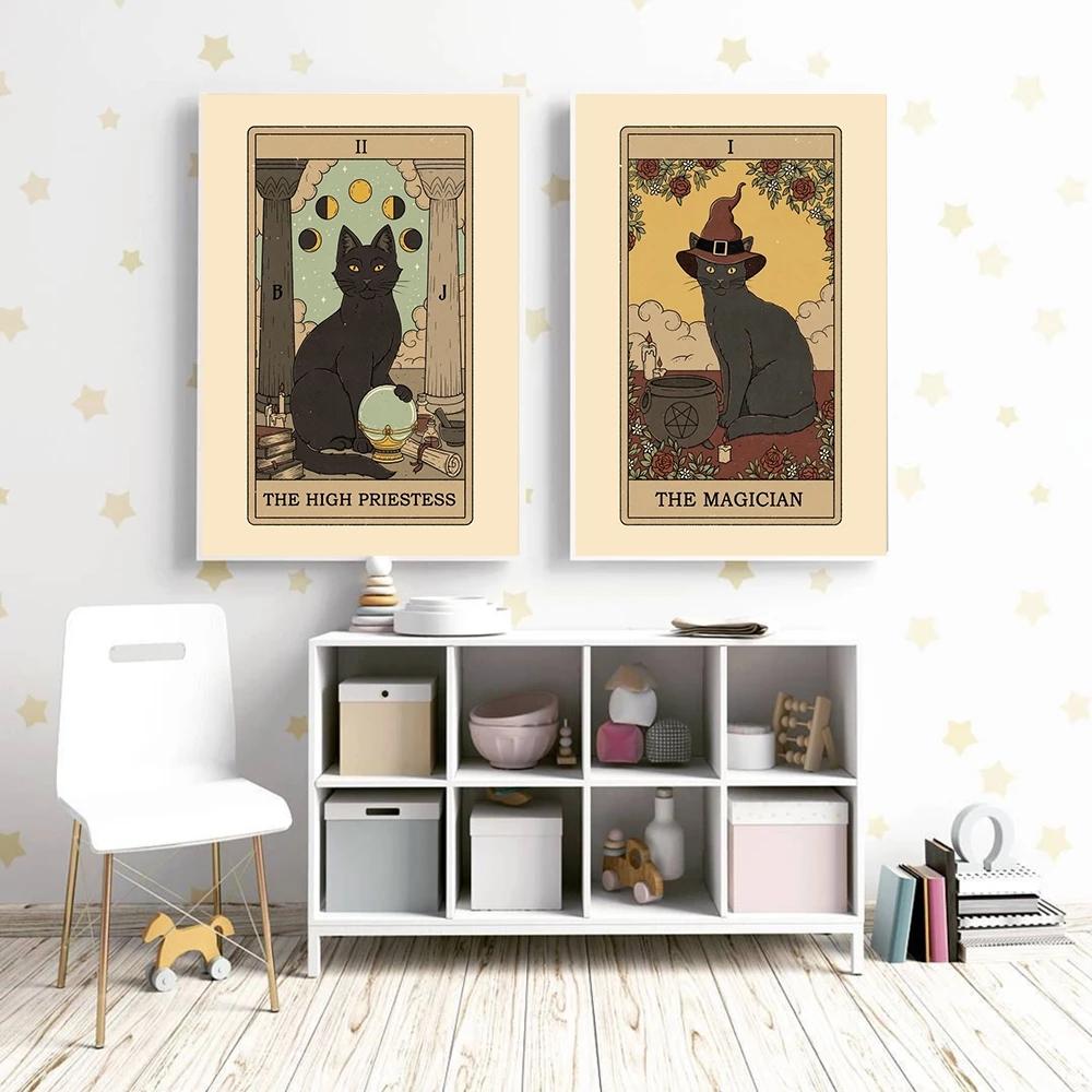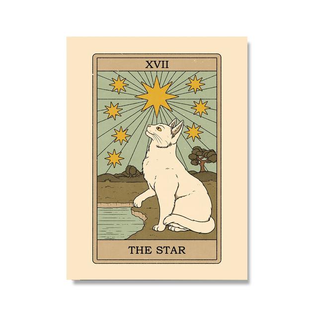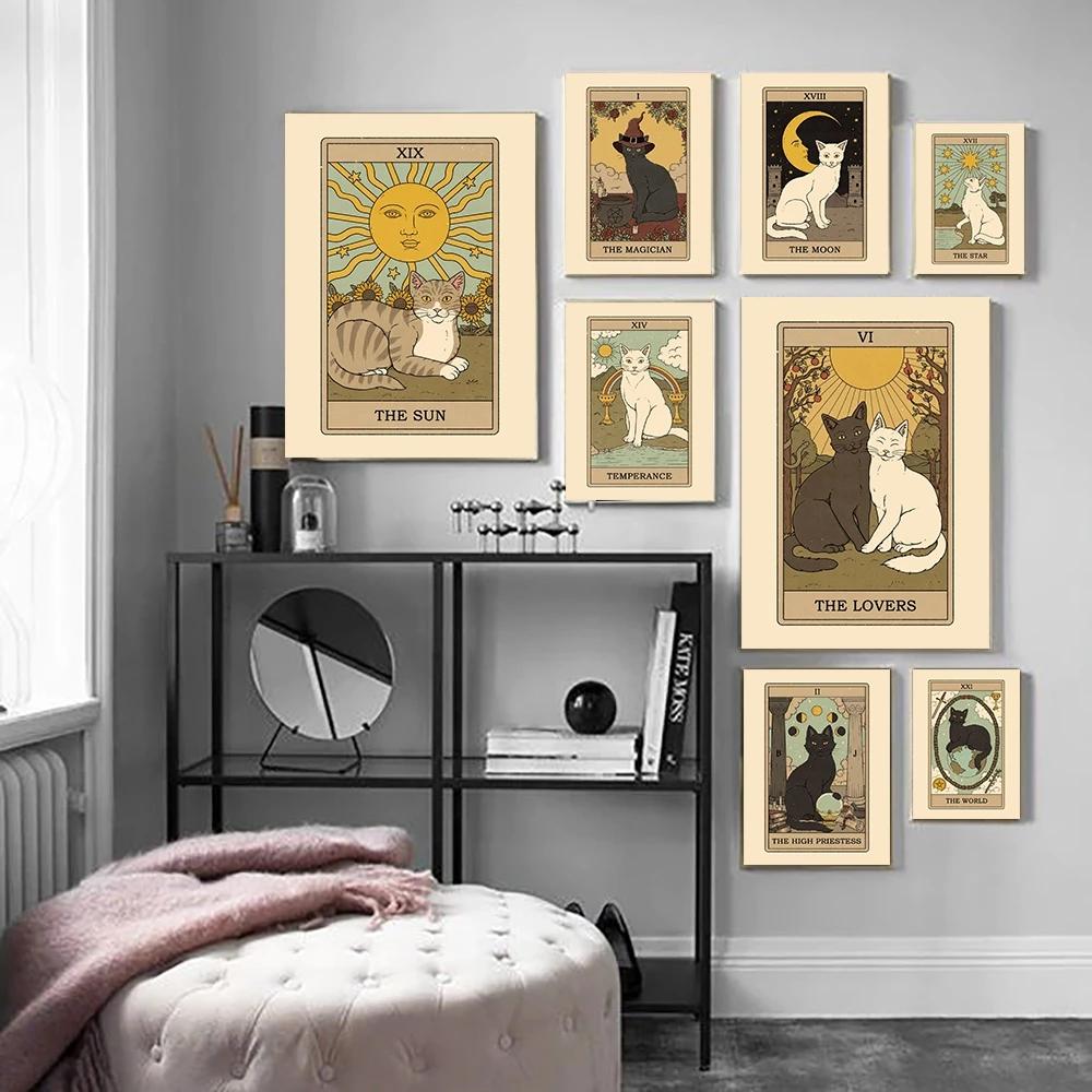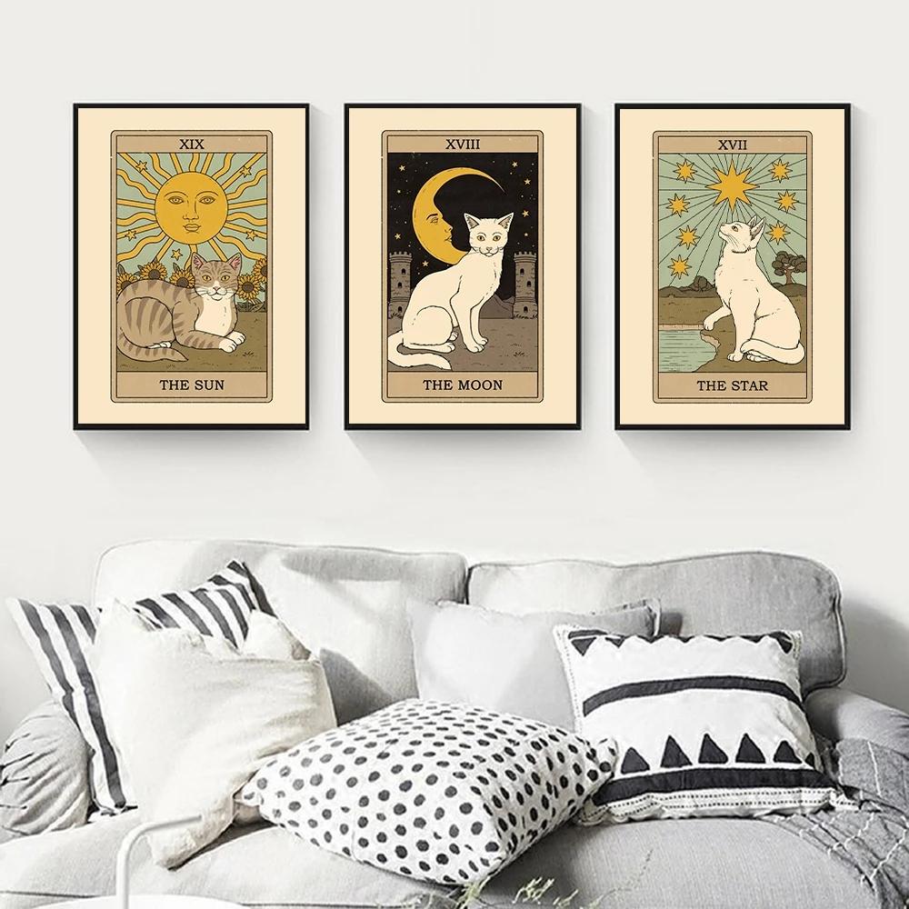 Рамка из цельного дерева, скандинавская абстрактная императрица Таро, настенные художественные картины, холст, картина, солнце, звезда, луна, кошка, постеры и принты для гостиной, домашний декор