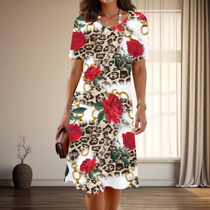 Женская мода изящный леопардовый принт принт лето весна короткий рукав О-образный вырез повседневные платья — купить товар онлайн с бесплатной доставкой по всему миру!