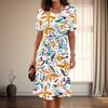 Женская мода изящный леопардовый принт принт лето весна короткий рукав О-образный вырез повседневные платья