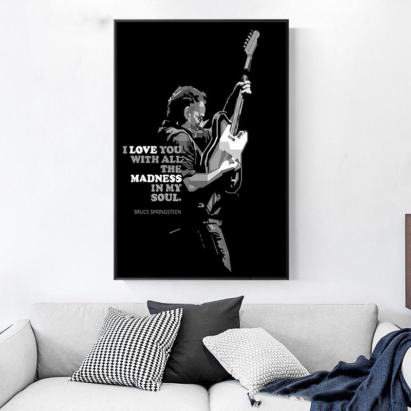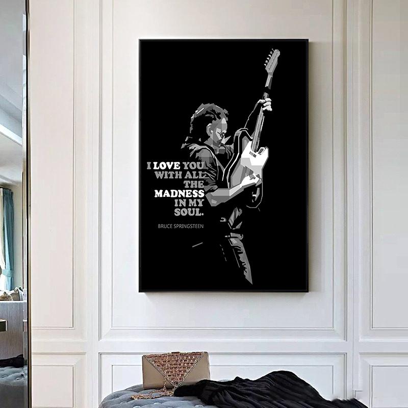 Певица Звезда Плакаты и принты Брюс Спрингстин Рисунок Портрет Черно-белые картины для интерьера Love You Quote Настенное искусство без рамки