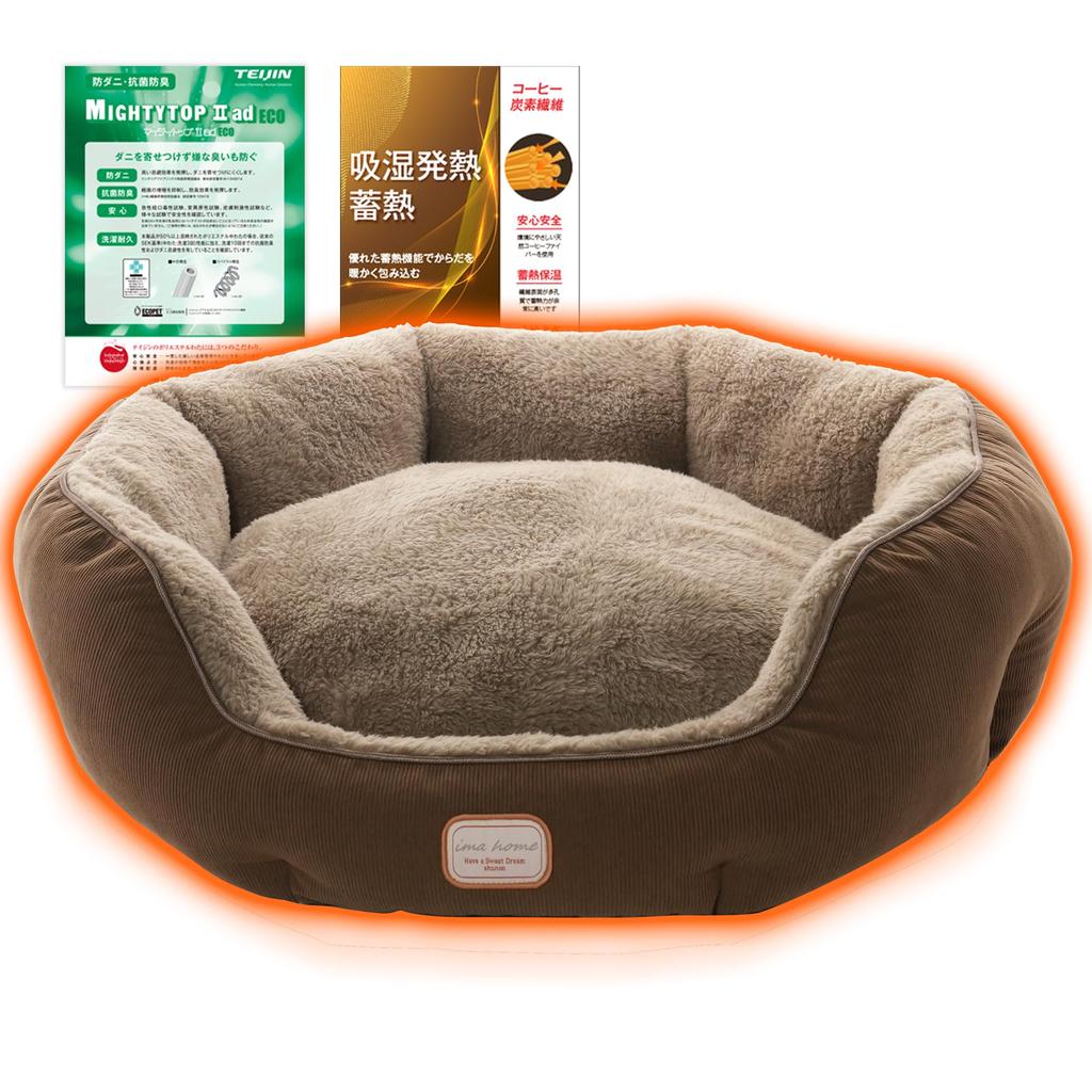 ``Шестислойная изоляция, включая алюминиевый лист, напыленный методом паровой обработки'' Благодаря тщательным исследованиям и уникальной шестислойной структуре мы создали зимнюю лежанку для кошек/собак, которая будет согревать вас до утра без необходимости обогрева.. Внешний слой выполнен из теплой арктической ковровой ткани, приятной на ощупь.. Средний слой изготовлен из аэрогелевого хлопка, обладающего «изоляционными свойствами», кофейного углеродного хлопка, обладающего «теплогенерацией в дальнем инфракрасном диапазоне», и ватина Teijin TEIJIN Mighty Top II ECO, обладающего превосходными «антибактериальными и дезодорирующими свойствами».. Кроме того, в подкладке используется теплоотражающий слой с алюминиевым покрытием, который выполняет функцию «блокировки холодного воздуха», отражая тепло, вырабатываемое в нижнем слое лежанки для кошки/собаки, и одновременно предотвращая проникновение холодного воздуха снаружи.. Эта лежанка для домашних животных обладает роскошным и мягким тепловым эффектом, который обеспечивает «блаженный сон» с теплом, окутывающим вас.