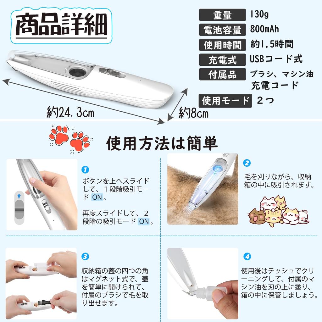 Caseeto Pet Suction Dog Rechargeable Partial 2 Level LED Home Pet Under the Behind the Around the Around the Low Noise Clipper, Type, Clipper,