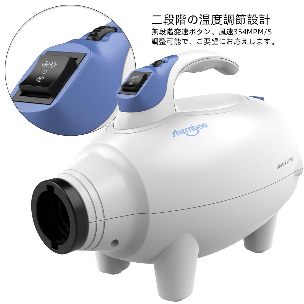 [Простота использования] ① Сушилка для домашних животных использует сертифицированную PSE мощность обдува, что обеспечивает низкое потребление и более высокую эффективность при сохранении безопасности.. ②Поверхность сушилки для собак отделана изоляционным материалом ABS, что значительно снижает вероятность выхода из строя.. ③Фен для домашних животных оснащен эргономичной ручкой и прост в использовании.