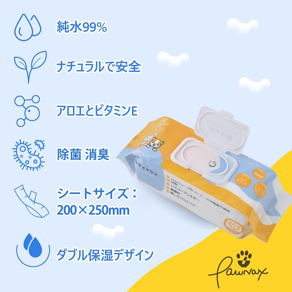 PAWNAX Pet Wet Pure Safe to Dog Body For Eyes Dog Paw Washing 80 листов x 6 шт. Влажная толстая салфетка для собак, 99% воды,
