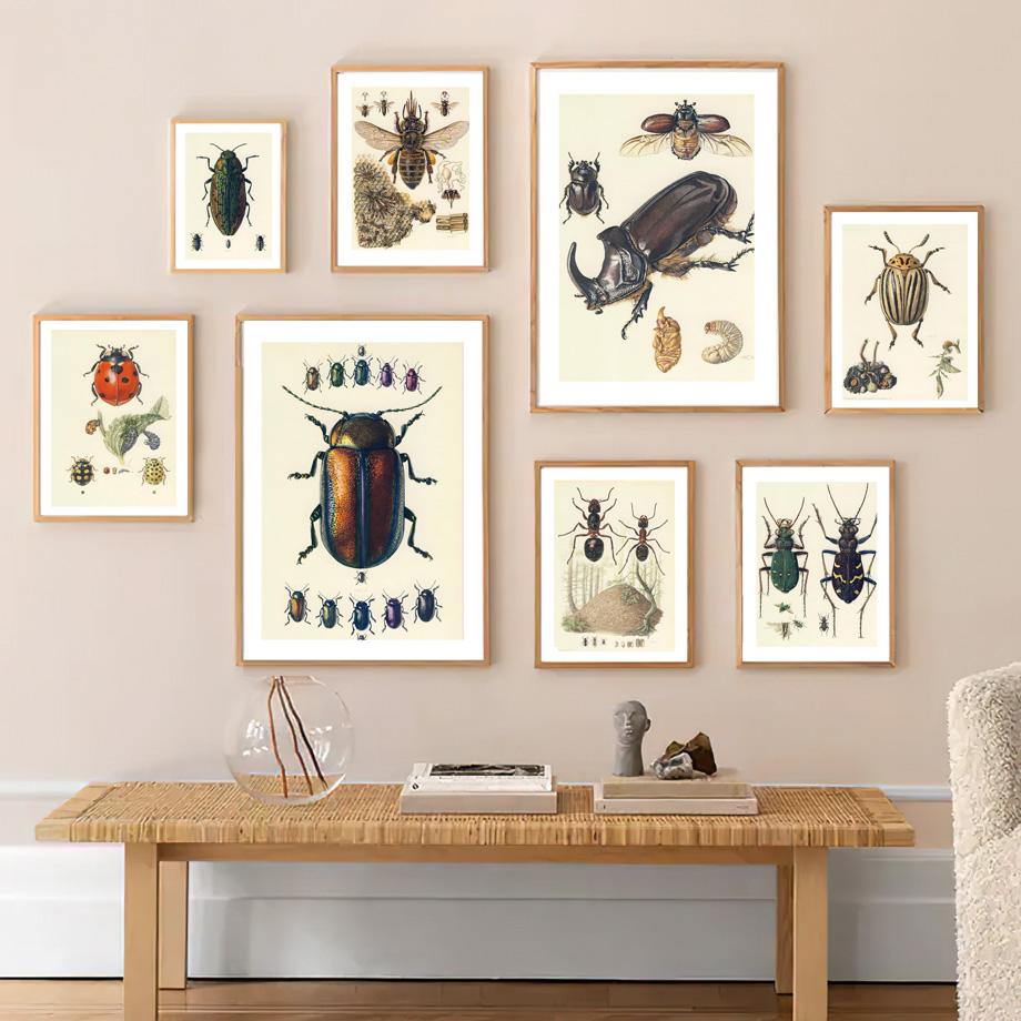 Винтажный постер с насекомыми-жуками, образец ретро-иллюстрации, настенная живопись на холсте, постеры и принты, картина для гостиной без рамки