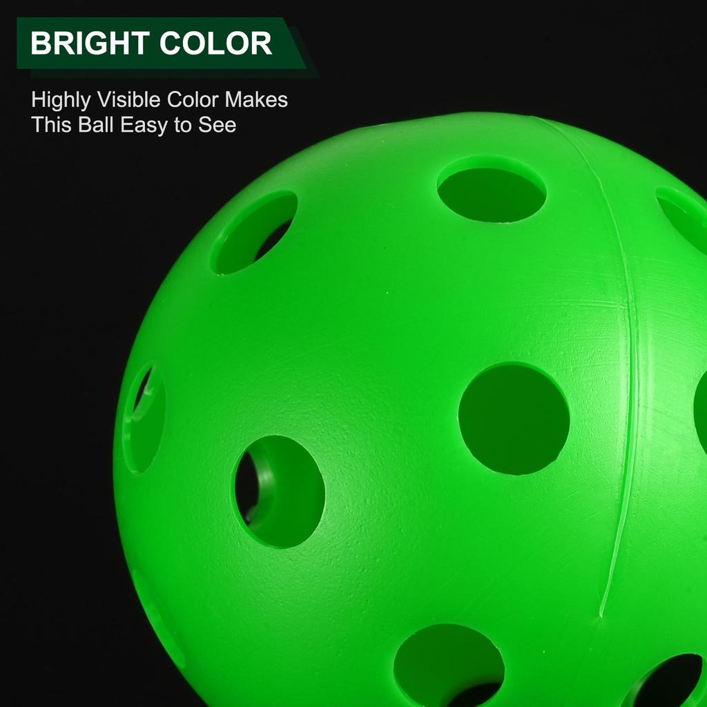 Прочный материал Наши мячи для пиклбола на открытом воздухе изготовлены из толстого полипропиленового материала, который обладает хорошей прочностью, ударопрочностью, амортизационными характеристиками, приятным ощущением удара, хорошим отскоком и долговечностью.