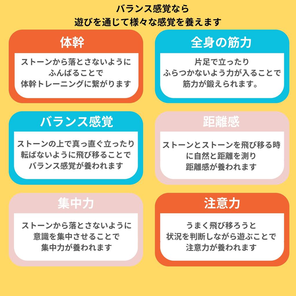 Развивайте равновесие и другие двигательные навыки, пока ваш ребенок прыгает на каждом камне.. Детские балансировочные камни идеально подходят для занятий в помещении и на открытом воздухе, стимулируют творческую игру и помогают детям развивать равновесие, моторику и координацию.. Эти твердые пластиковые камни долговечны, безопасны и удобны в транспортировке и хранении благодаря нескользящей резиновой основе и прочной конструкции, которую можно складывать друг на друга.. В этот набор входит 10 ступенчатых камней 5 ярких цветов.