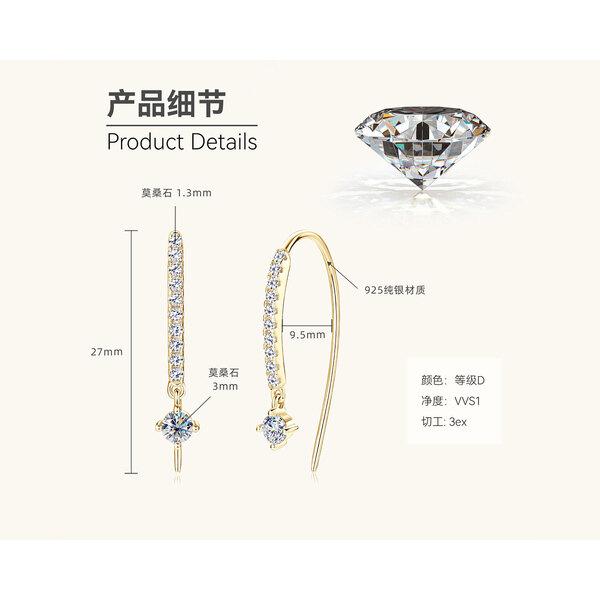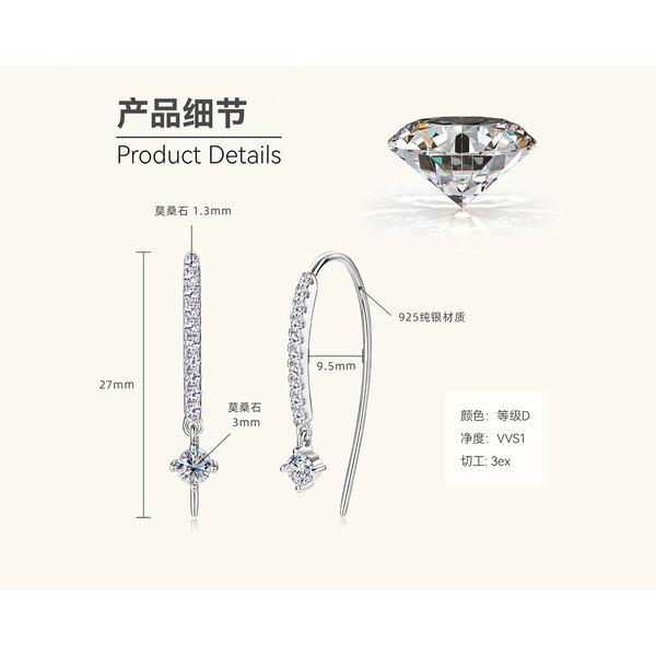 Серебряные гламурные модные серьги-подвески из муассанита в корейском стиле, универсальные и трендовые прямые серьги-подвески из муассанита, аксессуары для повседневных поездок на работу
