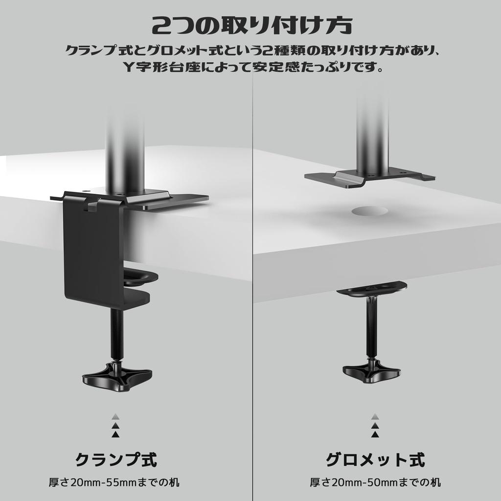 💻 [Простота установки] Существует два способа установки. Если в вашем столе есть отверстие, вы можете закрепить его с помощью люверса.. Если на вашем столе нет отверстия, вы также можете прикрепить его к краю стола.. Тип крепления струбциной подходит для столов толщиной до 55 мм, а тип крепления через отверстие - для столов толщиной до 50 мм. Кроме того, стандарт VESA имеет отверстия 75*75 мм и 100*100 мм, что позволяет прикрепить ноутбук 11–17 дюймов или монитор 15–27 дюймов.. Помимо обычных мониторов, также установлены изогнутые мониторы.