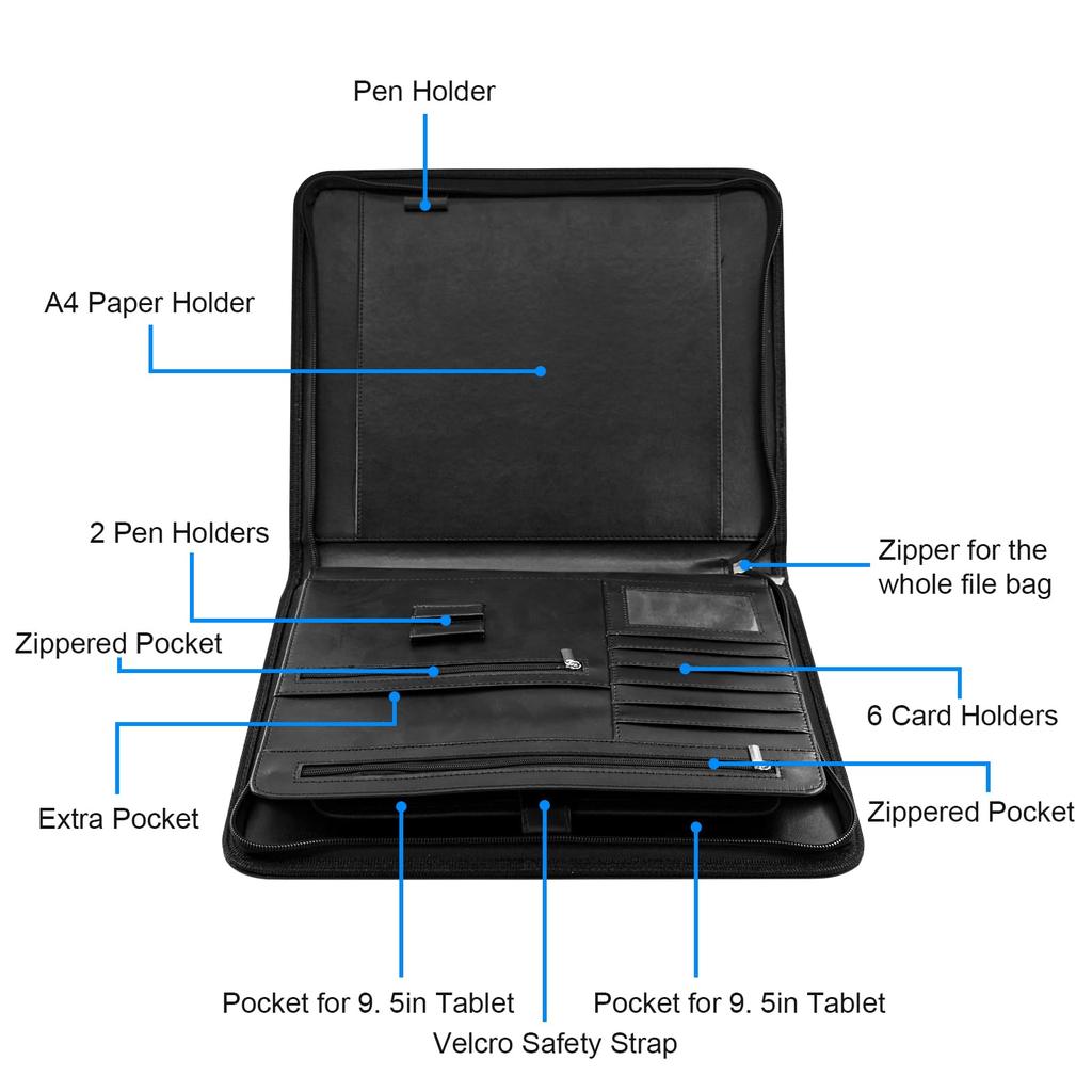 «Широкий спектр применения для хранения данных»: В портфель на молнии поместится все необходимое для встречи или собеседования.. Имеет различные карманы для визиток, удостоверений личности, банковских карт, документов, планшетов, ручек, резюме, юридических документов, проездных билетов и т. д.