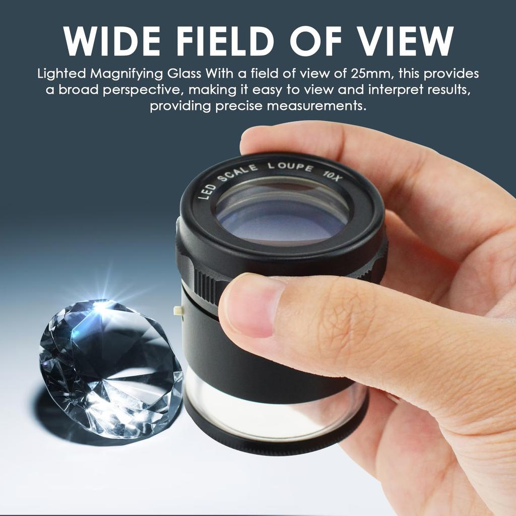 10-кратная лупа для оценки ювелирных изделий, портативная карманная лупа для чтения со светодиодной подсветкой, фокусирующая глазная лупа для сменной сетки 25 мм стекло