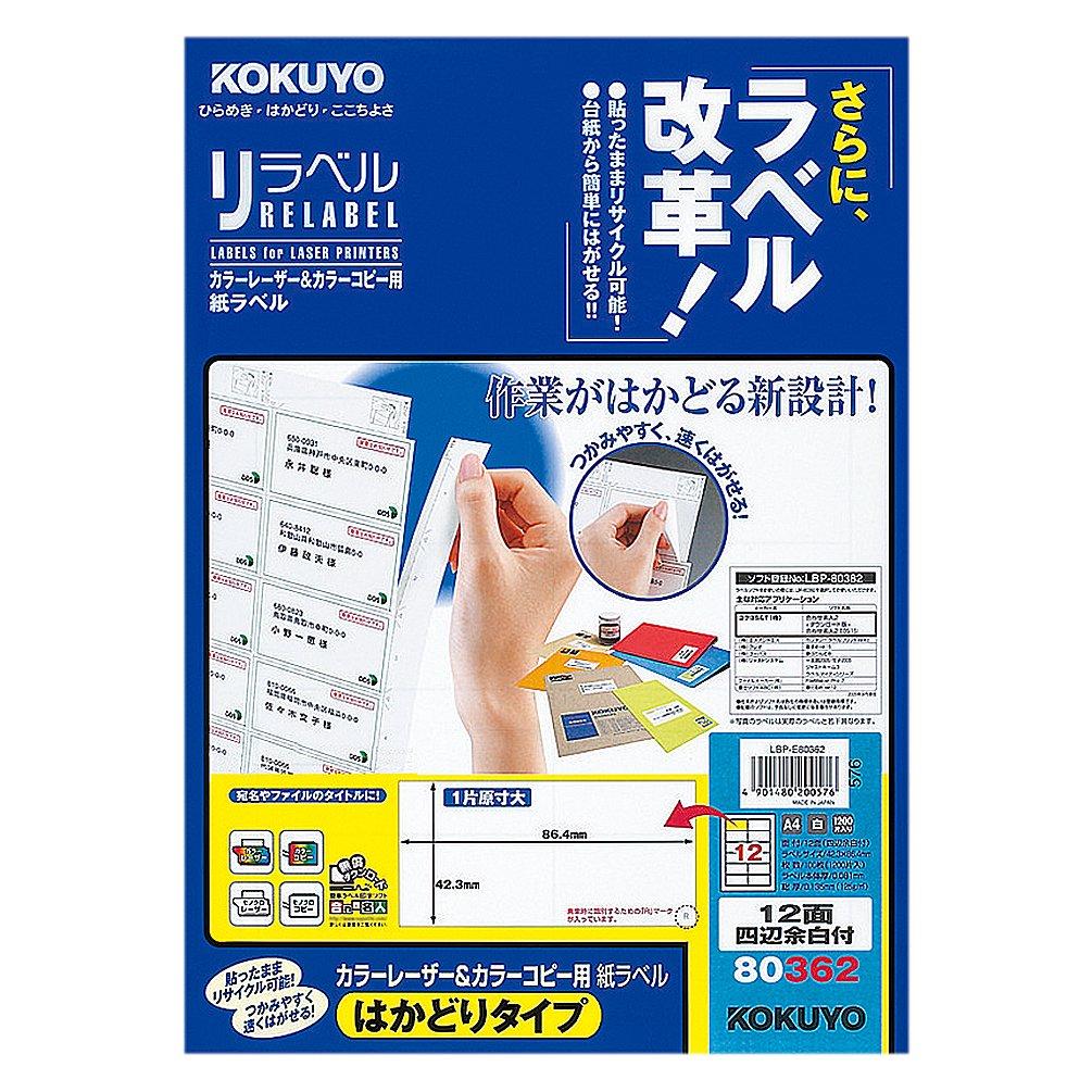 KOKUYO Цветной лазерный принтер для цветной печати этикеток, масштабный, 12-сторонний, с полями со всех сторон, 100 листов, повторная этикетка LBP-E80362