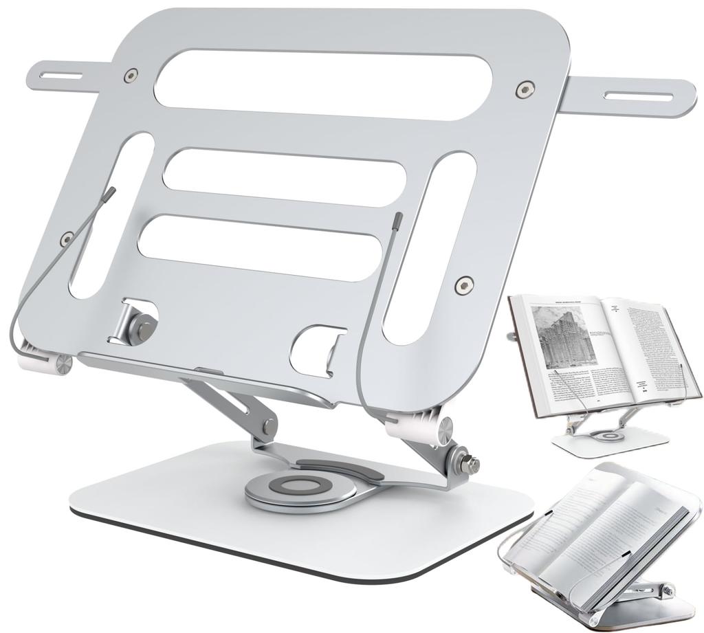 [Плавная регулировка и вращение на 360°] Эта подставка для книг не требует сборки. Панель и держатель из алюминиевого сплава имеют анодированное матовое покрытие, основание изготовлено из сверхтвердой стали, гладкое и износостойкое, и поставляется с силиконовым ковриком для предотвращения скольжения.. Его можно плавно регулировать под углом 180°, и вы можете использовать его, зафиксировав оптимальный угол и высоту.. Основание может свободно вращаться на 360°. Регулируемый в 3 этапа вращающийся на 360° книжный зажим не закроет буквы.